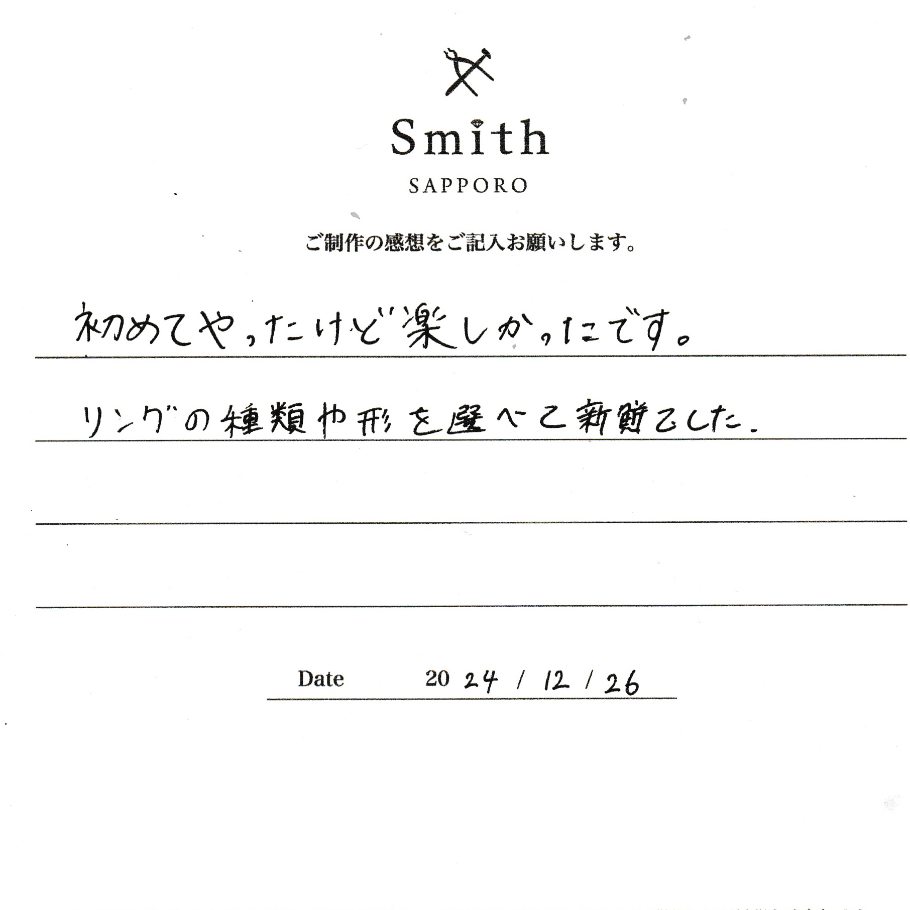 リングの種類や形を選べて新鮮でした。