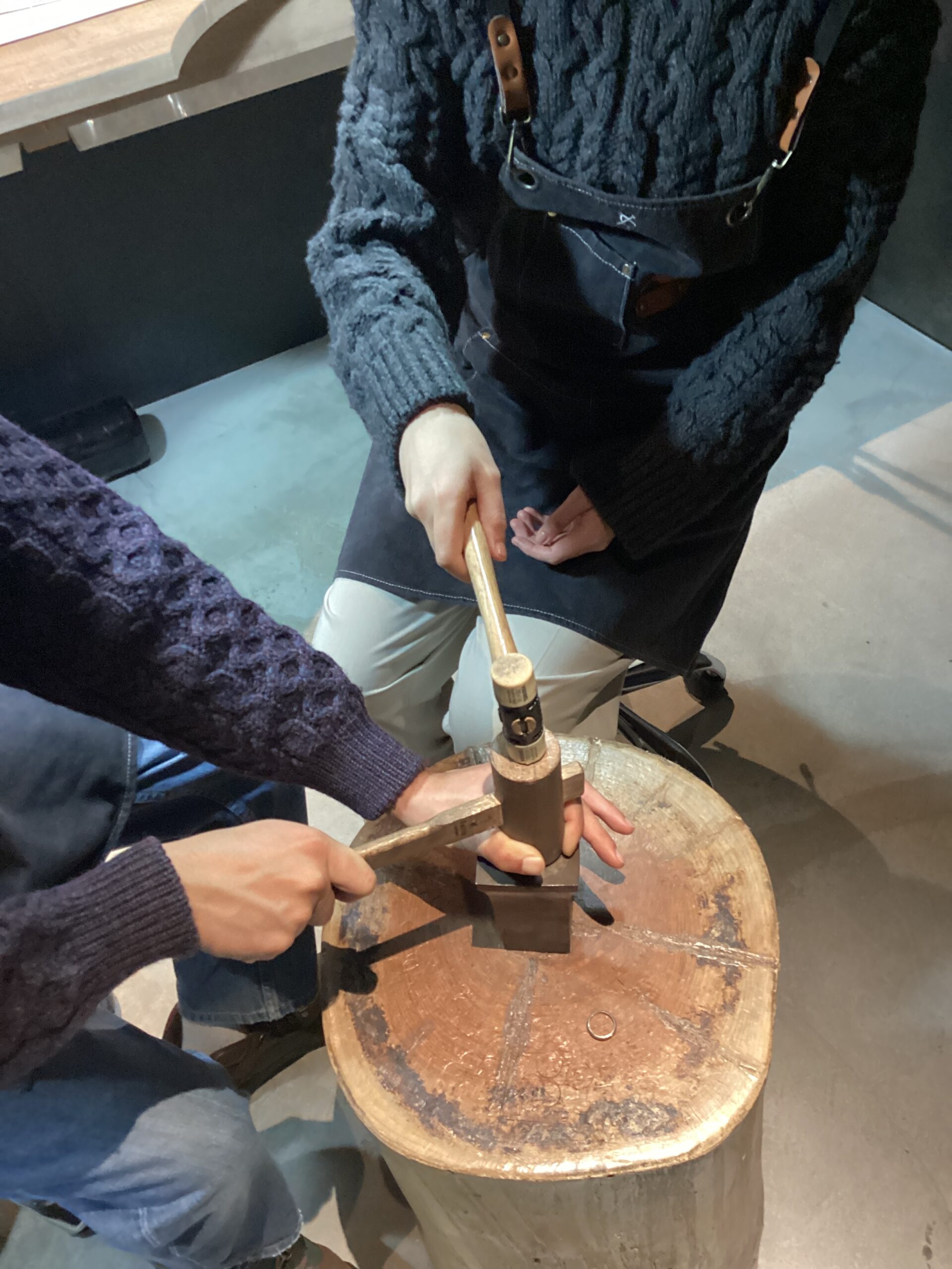 お互いの指輪を作り合い、穏やかな雰囲気で笑顔が素敵なお二人のご制作風景でしたね。