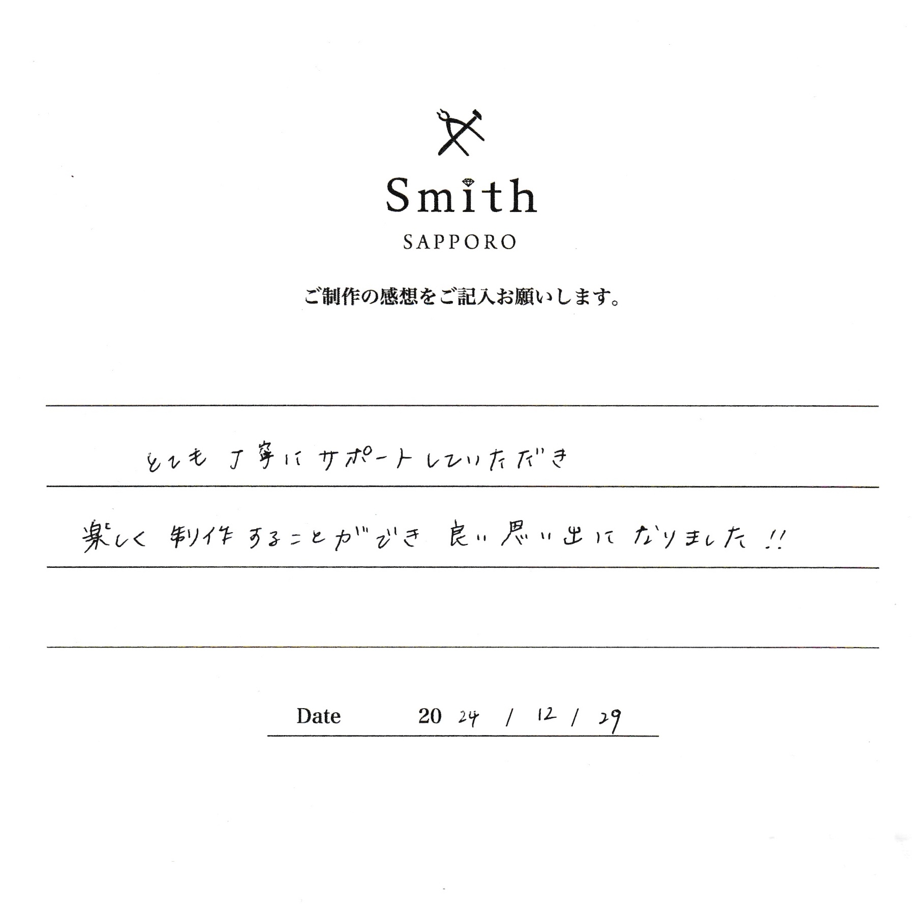 とても丁寧にサポートしていただき、楽しく制作することができ、良い思い出になりました!