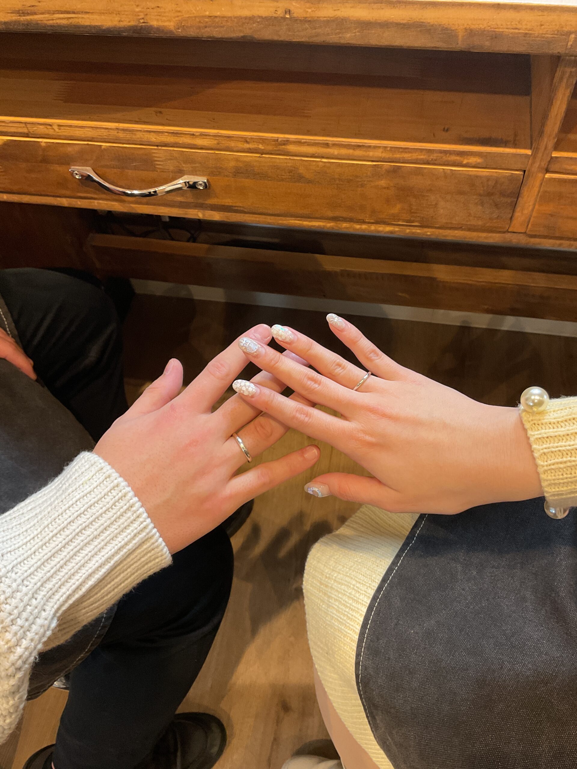 外側にはお二人のお互いの誕生石が入り、とても素敵なリングになりましたね。