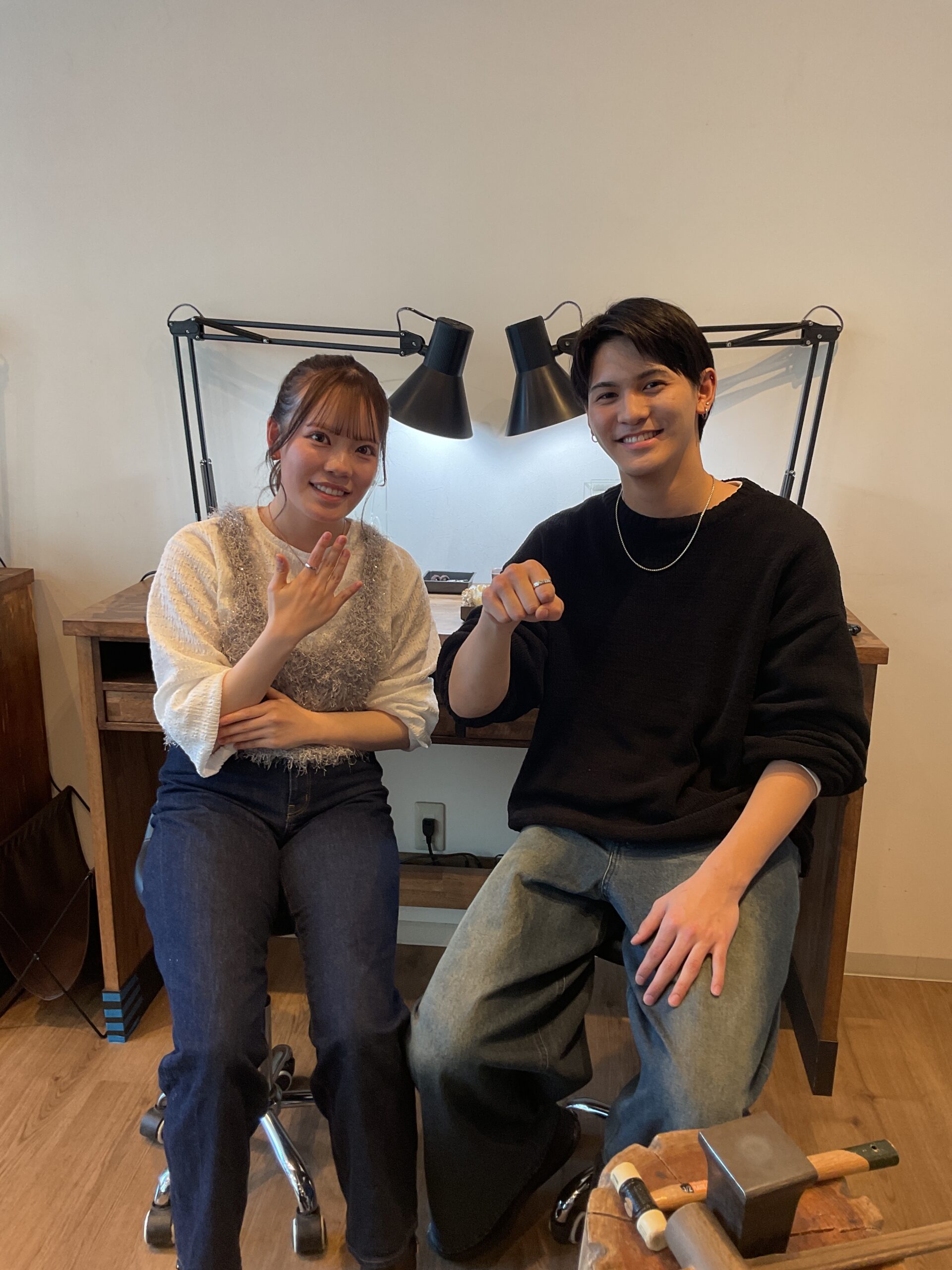 内側にはお二人のお揃いの記念日とイニシャルが入り、とても素敵なリングになりましたね。