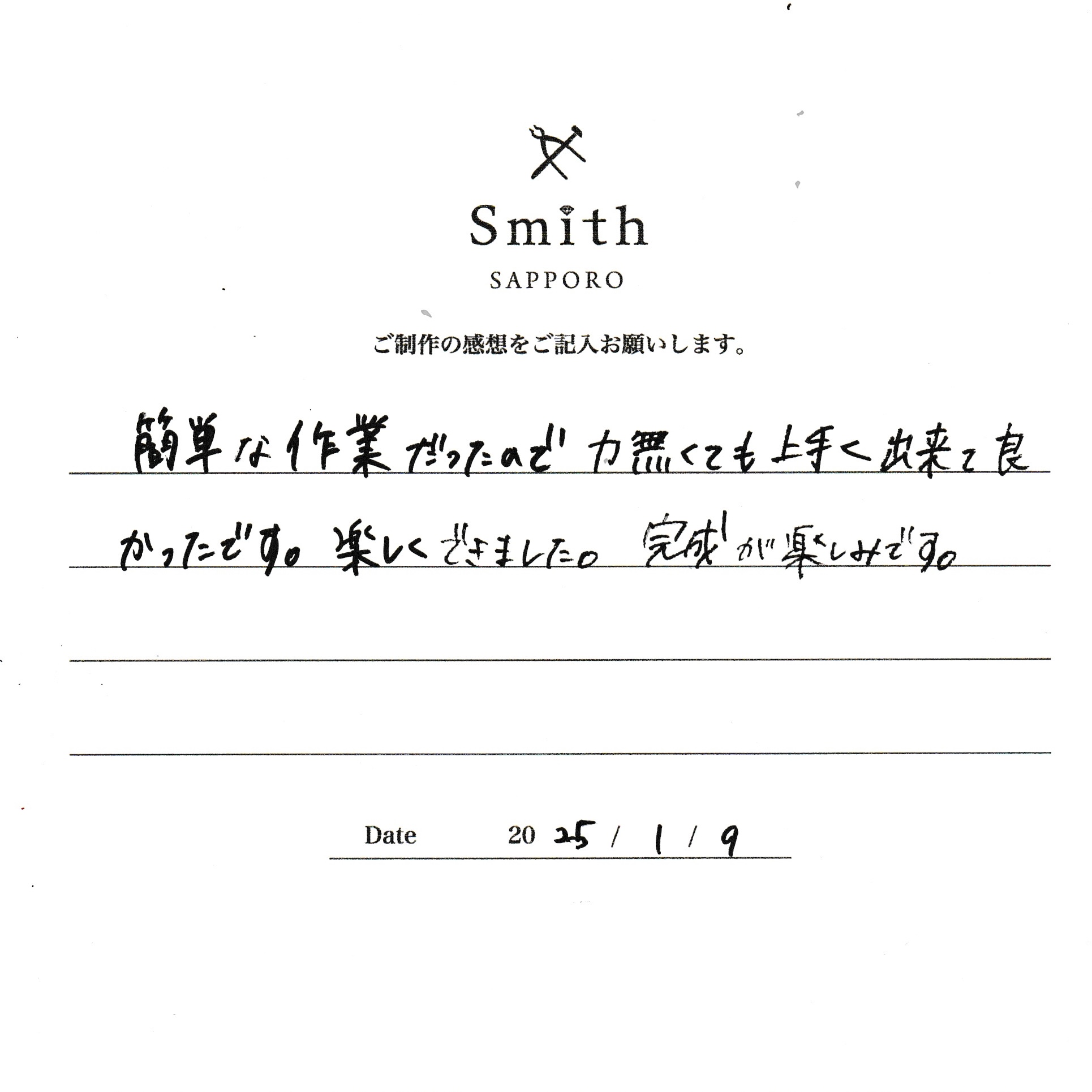 楽しく出来ました、完成が楽しみです。