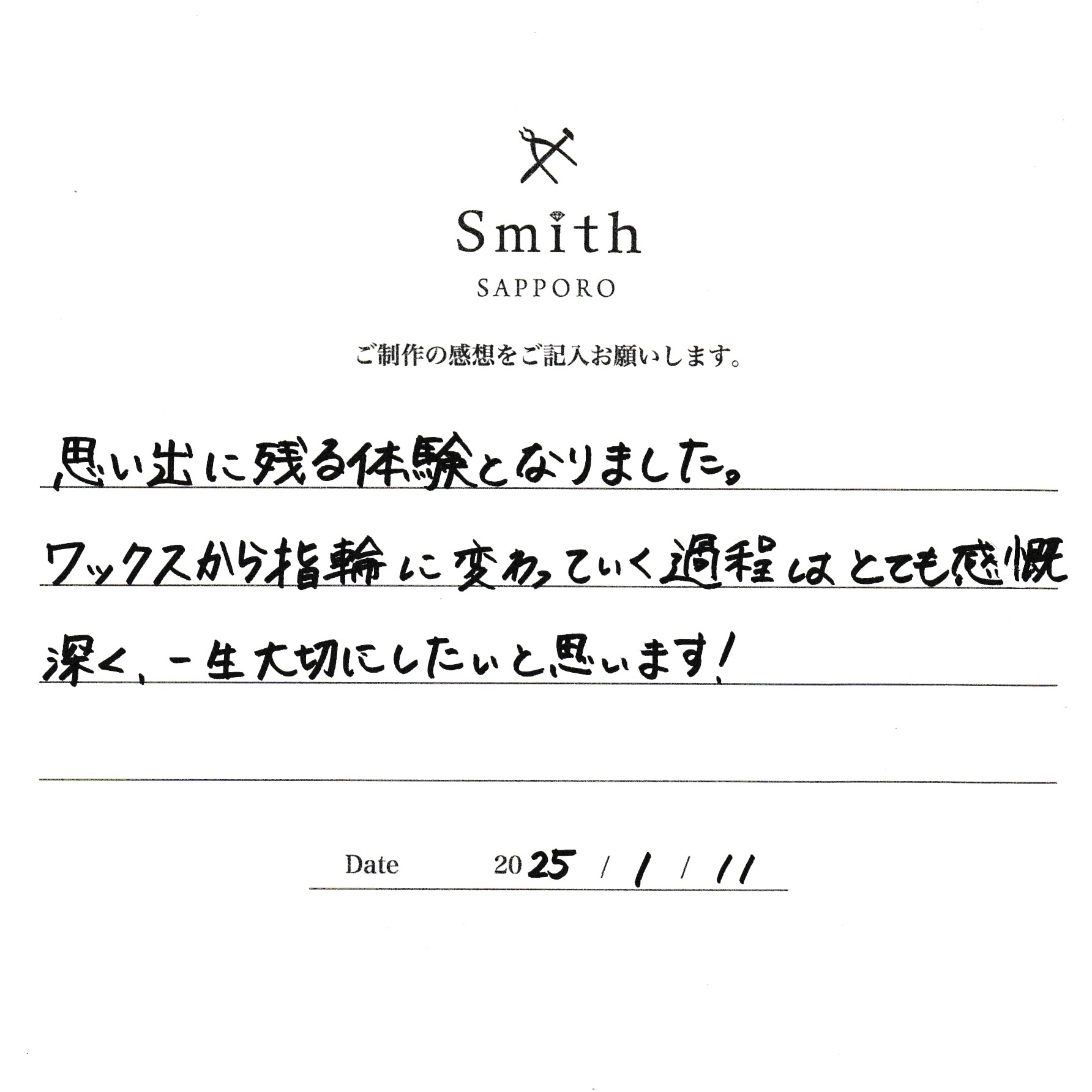 ワックスから指輪に変わっていく過程はとても感慨深く、一生大切にしたいと思います!