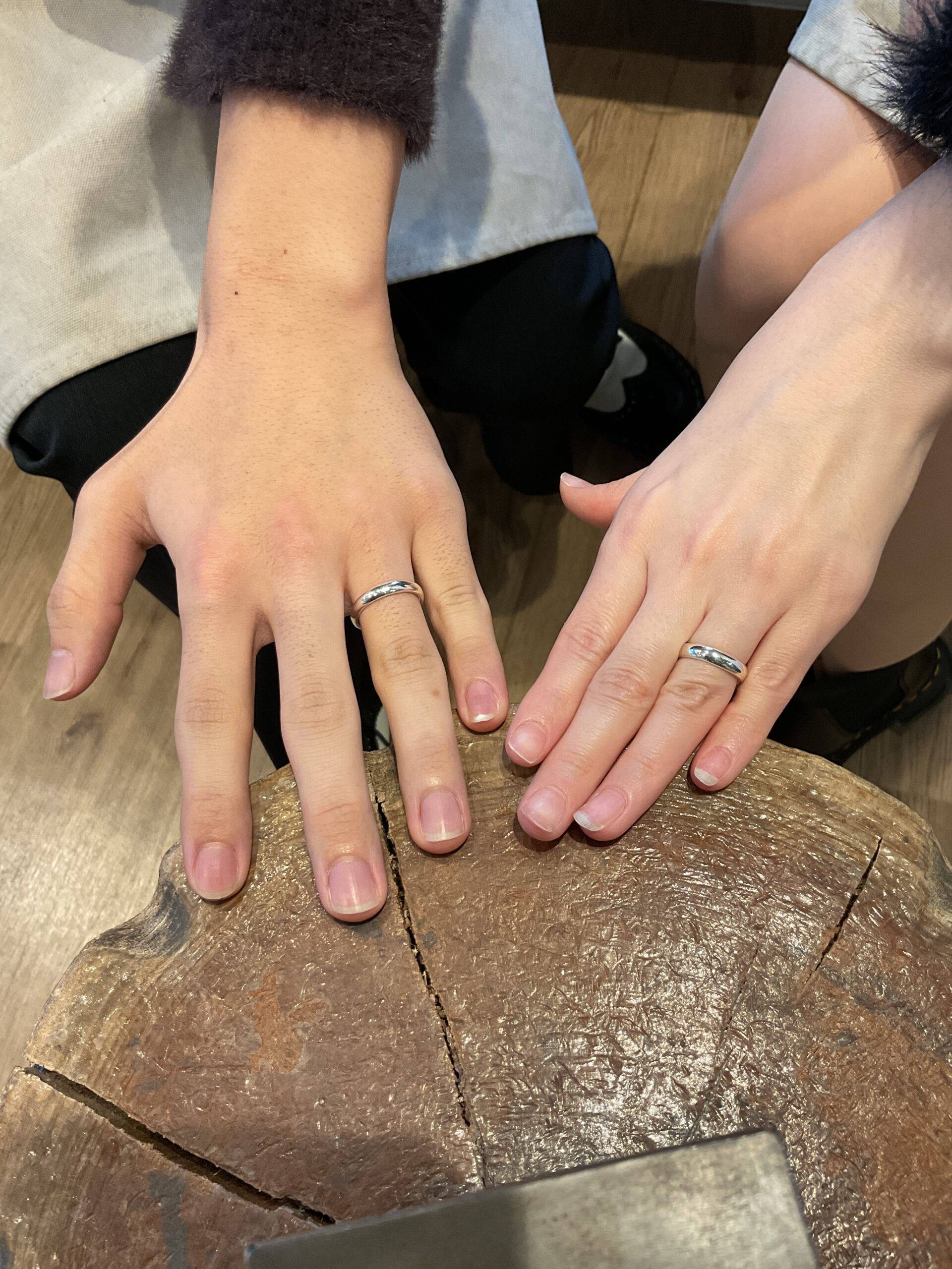 基本の形は4mmの甲丸リングにテクスチャーは鏡面をお選びいただきました。
