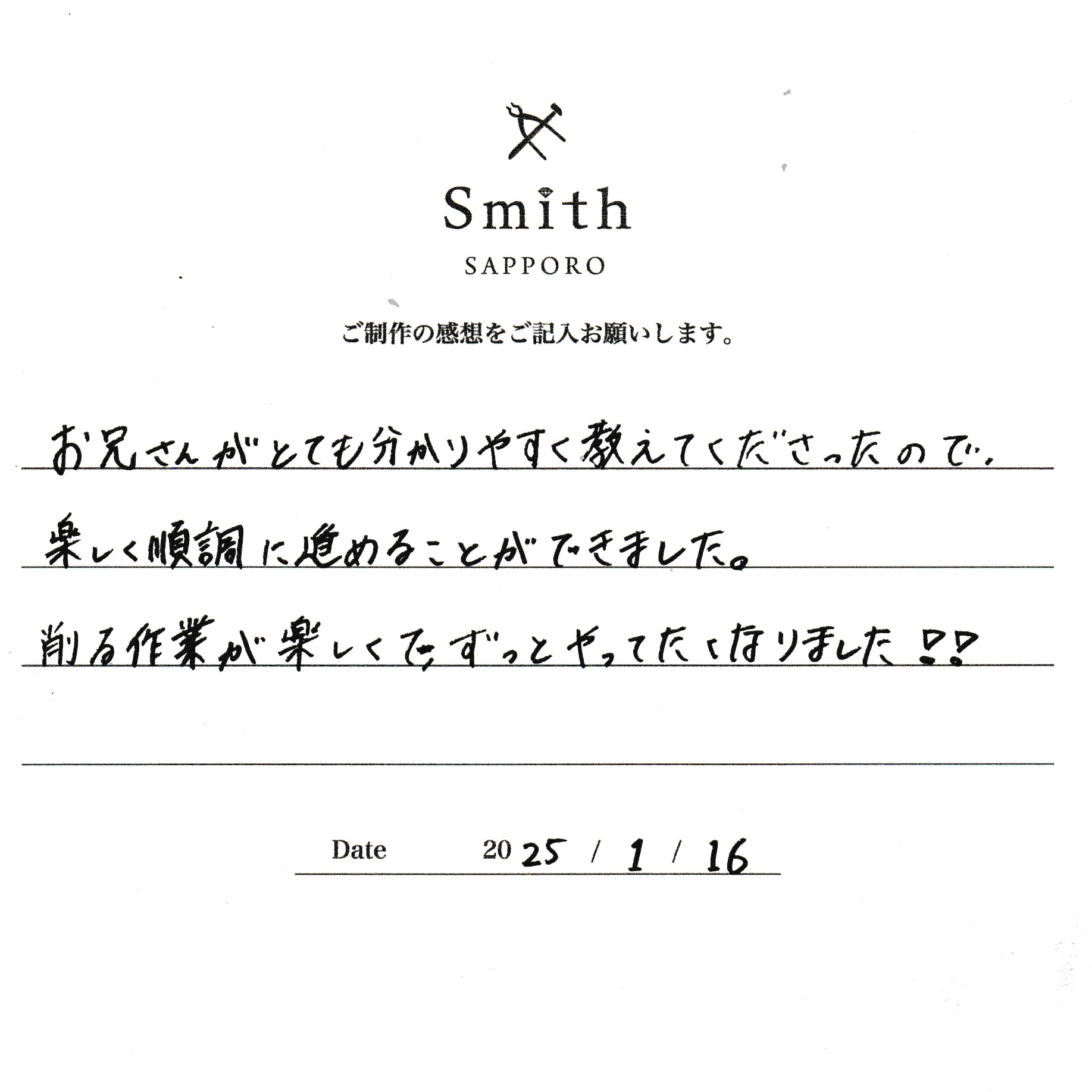 お兄さんがとても分かりやすく教えてくださったので、楽しく順調に進めることができました。