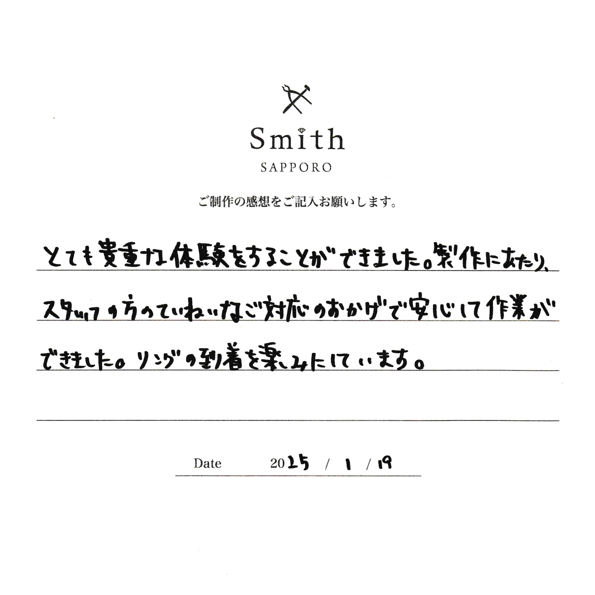 このたびは、手作りの結婚指輪の制作にお越しいただき、誠にありがとうございました。