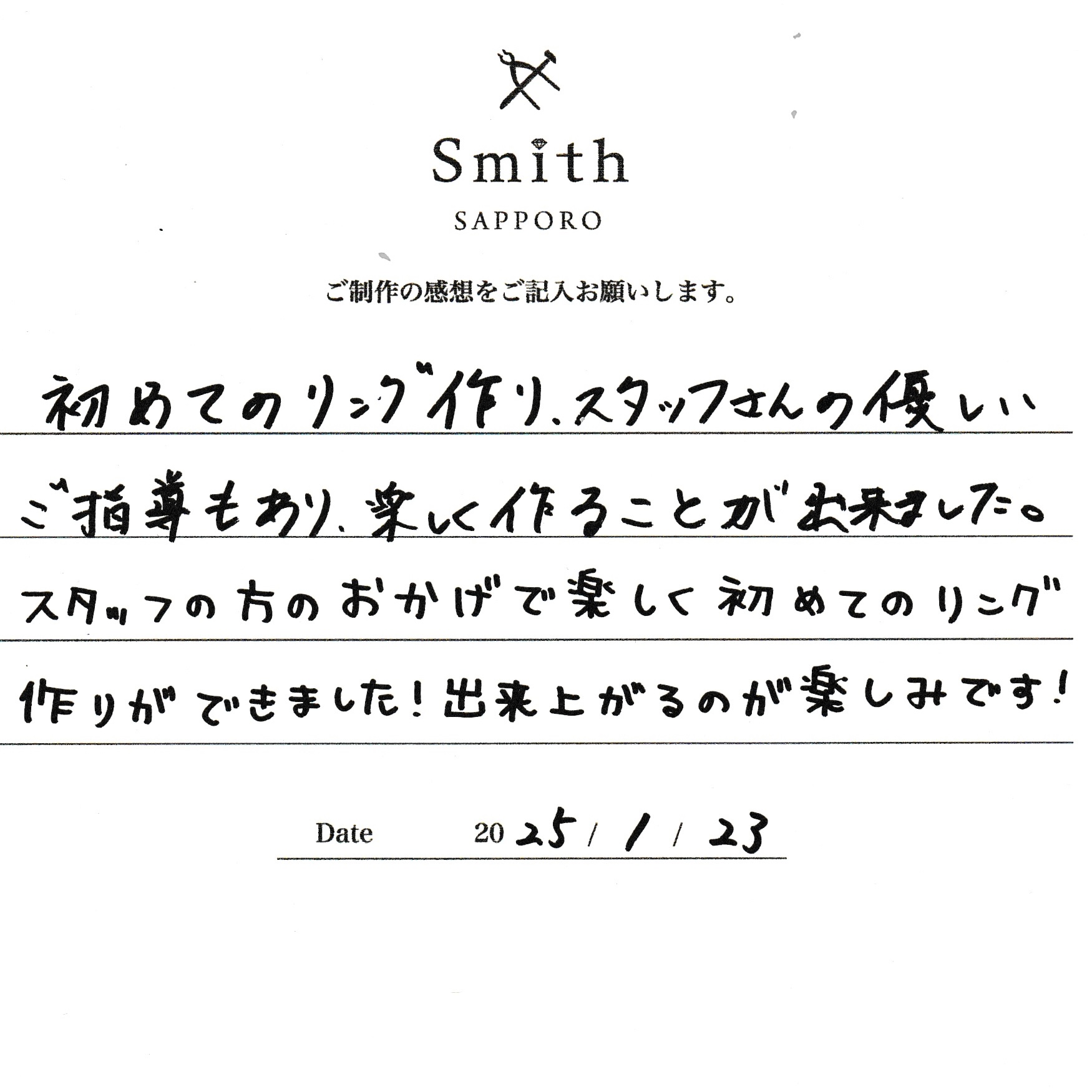 初めてのリング作り、スタッフさんの優しいご指導もあり、楽しく作ることが出来ました。