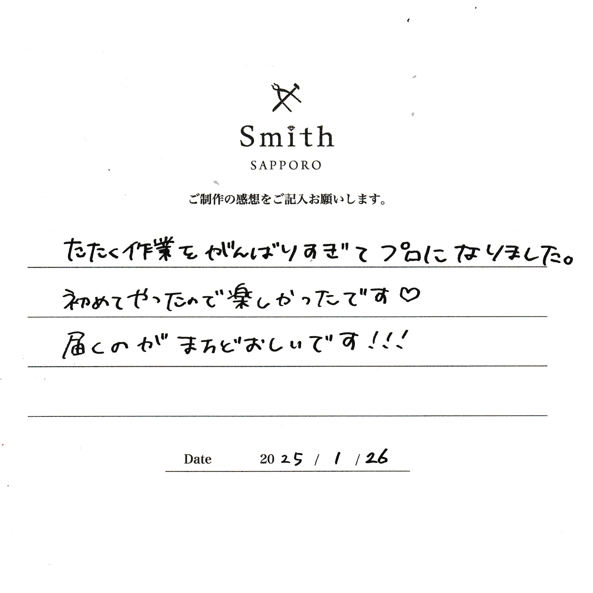 大切に加工させていただきますので、楽しみにお待ちくださいませ。