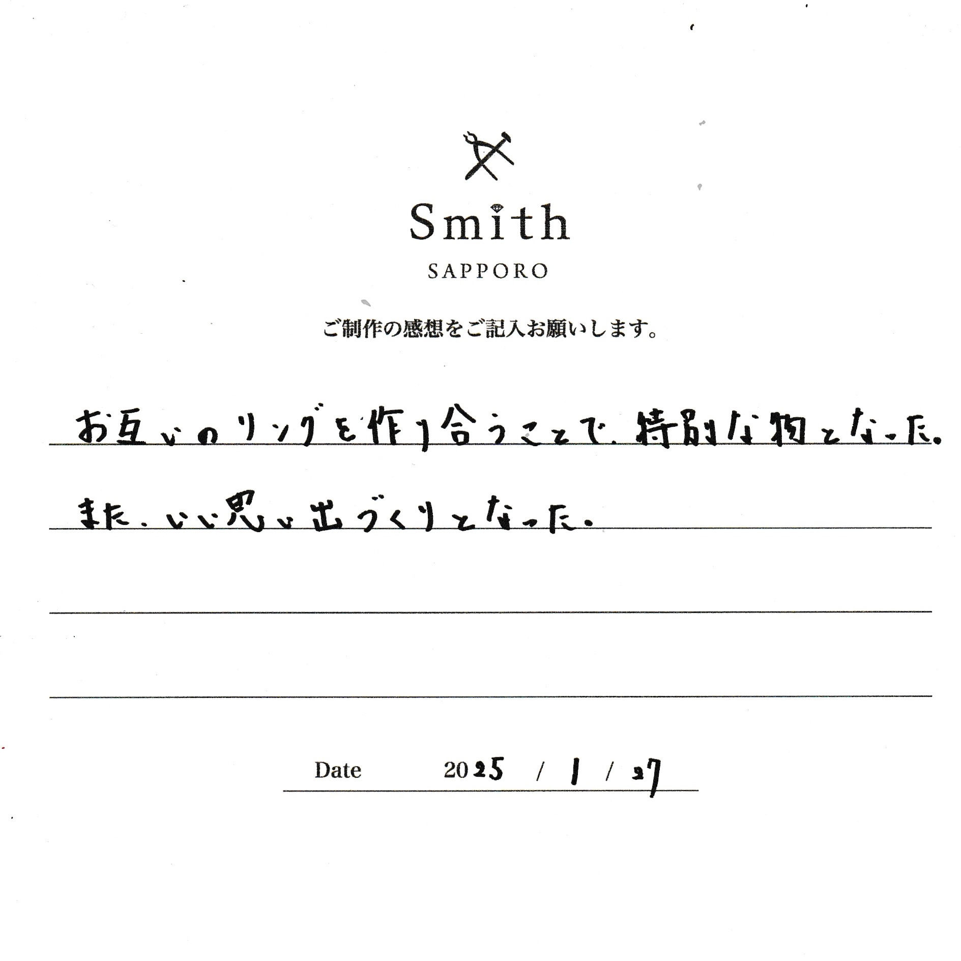 工房Smith札幌でお客様がご制作された指輪をご紹介