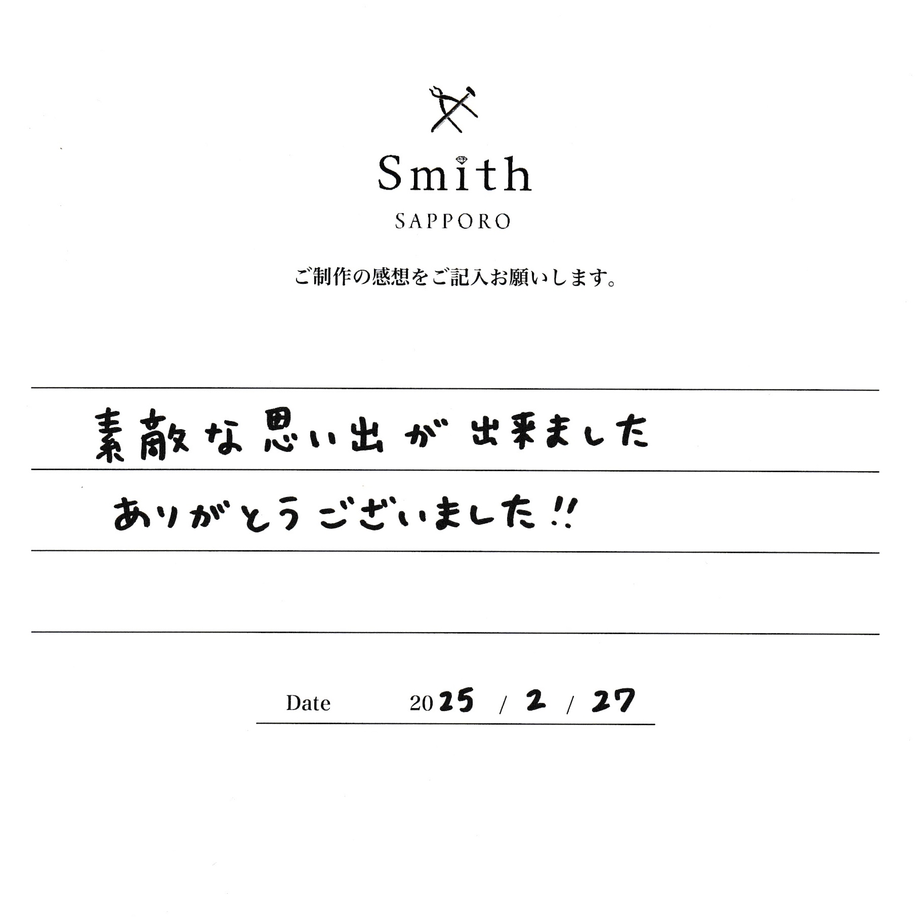 この度は手作り結婚指輪のご制作に、工房スミス札幌本店をお選び頂きまして誠にありがとうございます。