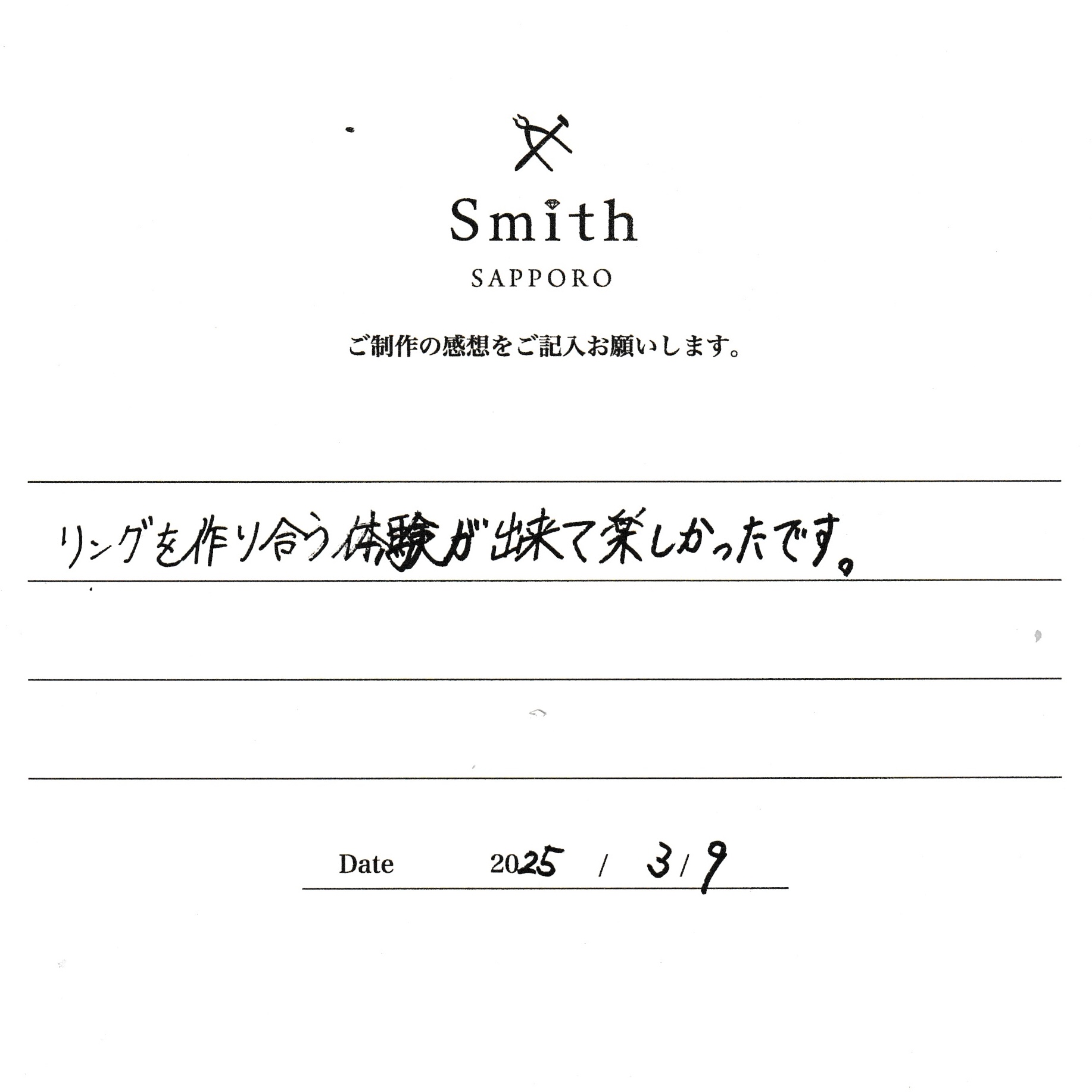 リングを作り合う体験ができて楽しかったです。