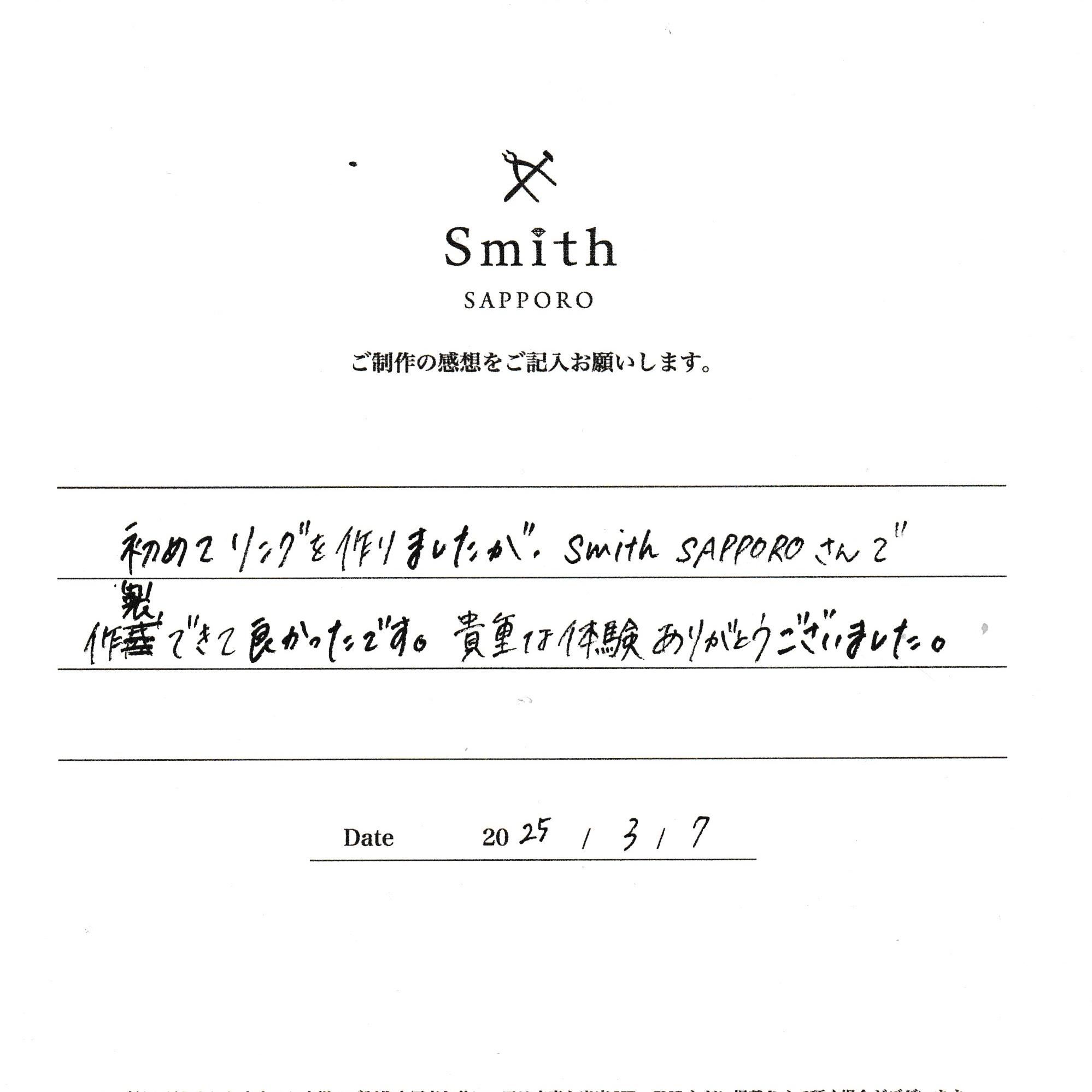 初めてリングを作りましたが、Smith Sapporoさんで制作できて良かったです。