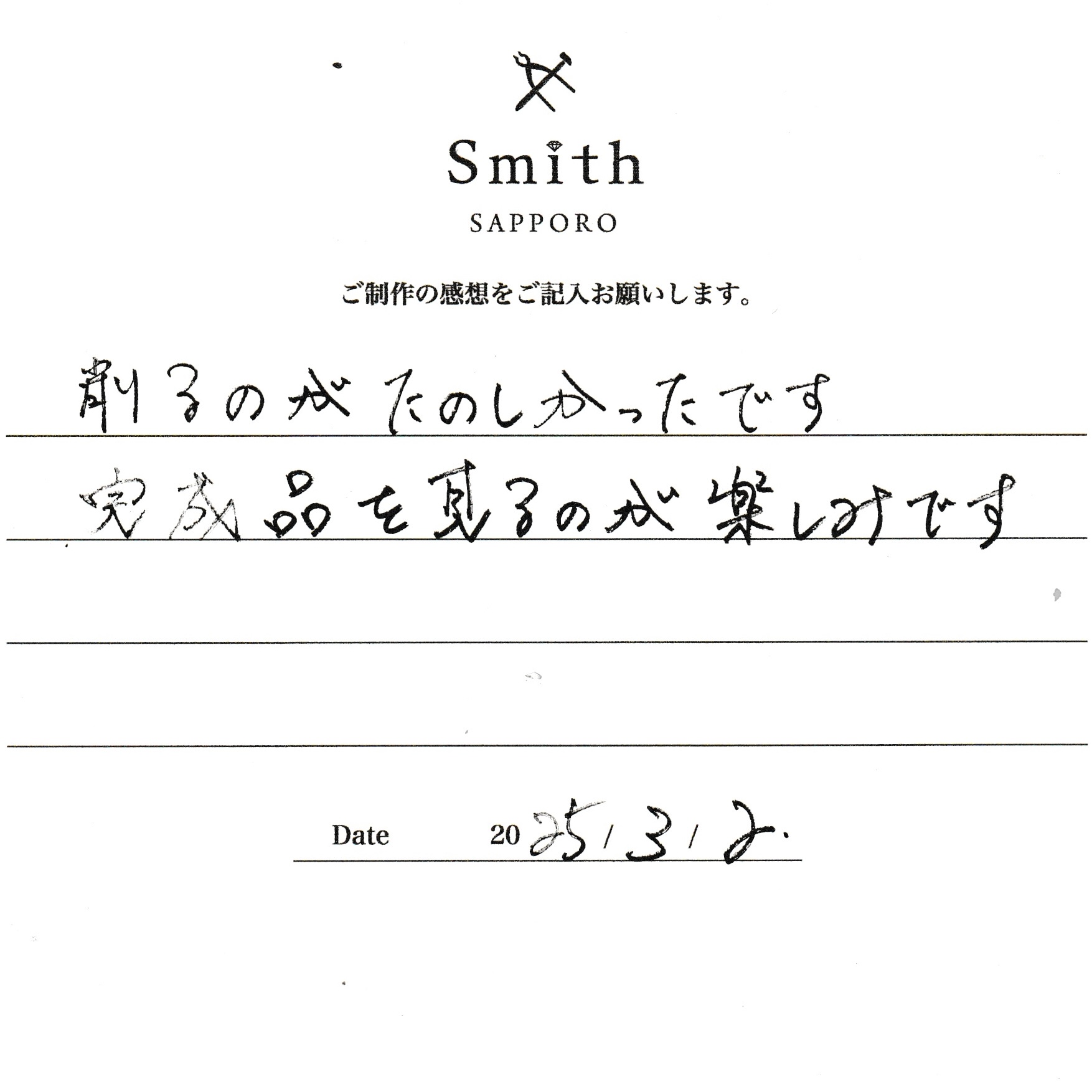 大切に加工させていただきますので、楽しみにお待ちくださいませ。