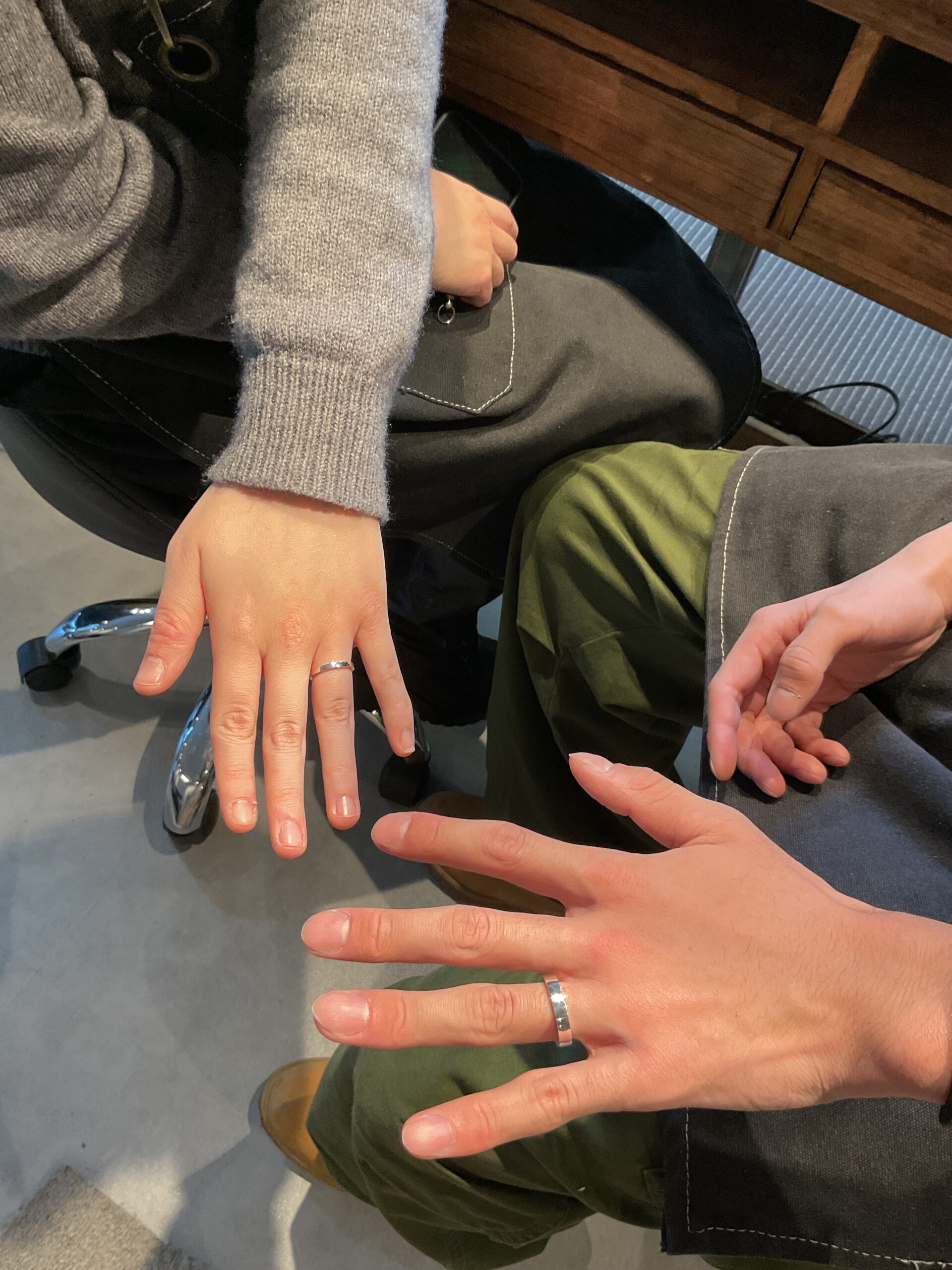 基本の形は2mmと4mmの平打ちリングにテクスチャーは鏡面をお選びいただきました。
