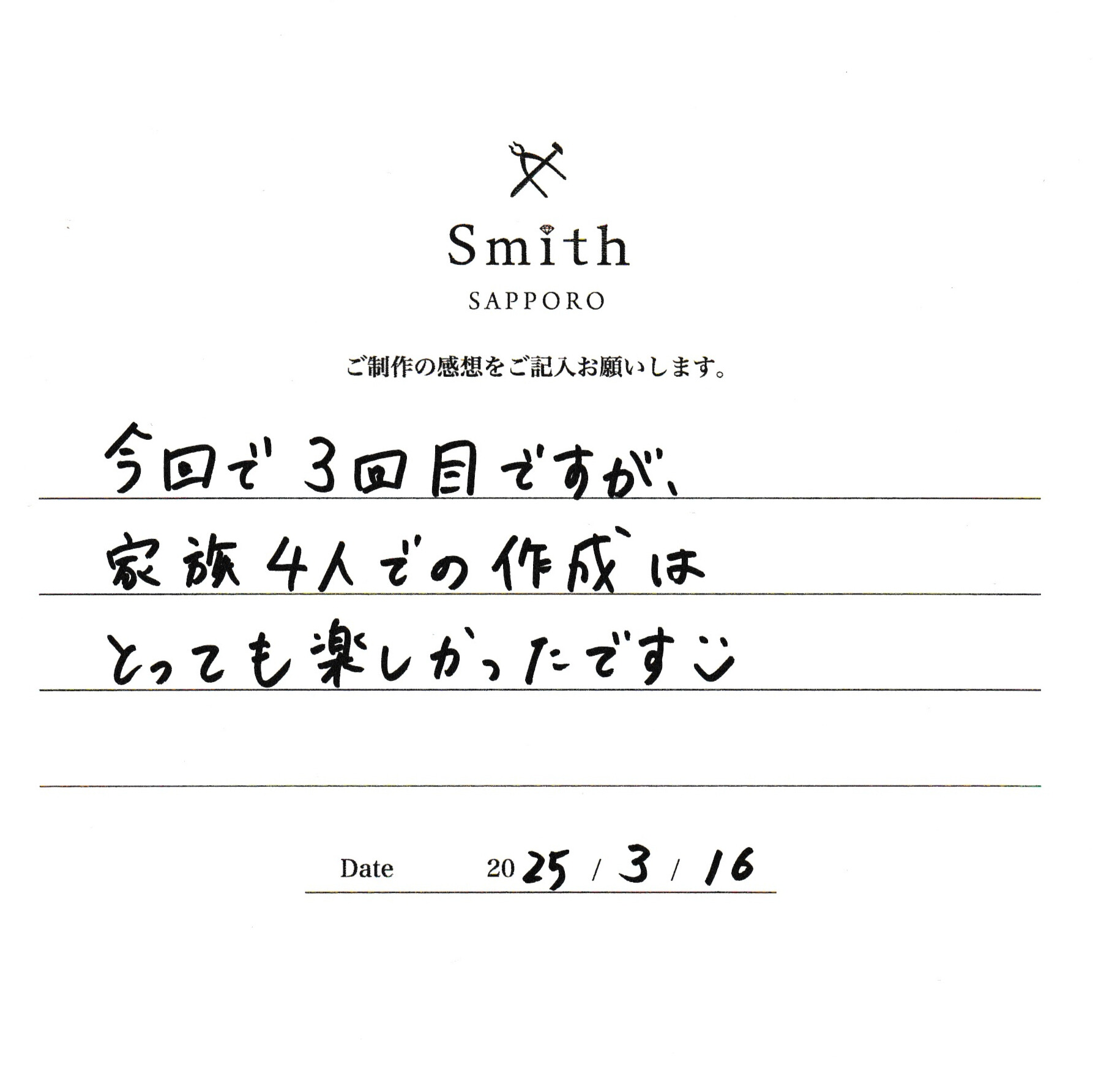 S様【今回で3回目ですが、家族四人での作成はとっても楽しかったです】
