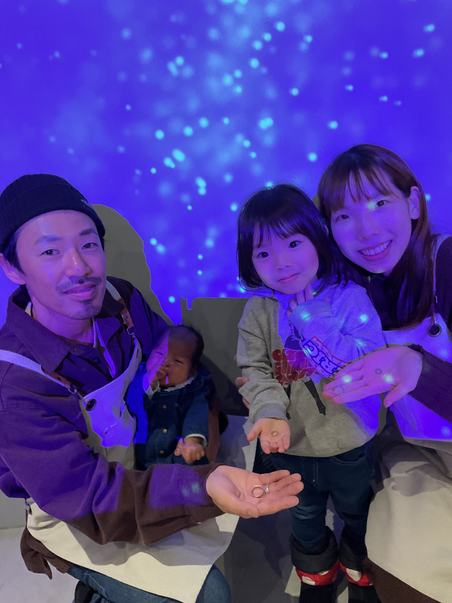 ご夫婦のマリッジリングにベビーリング、そして今回は2本目のベビーリング。とご来店3回目のお客様は、今回ご家族4人で来てくださいました。