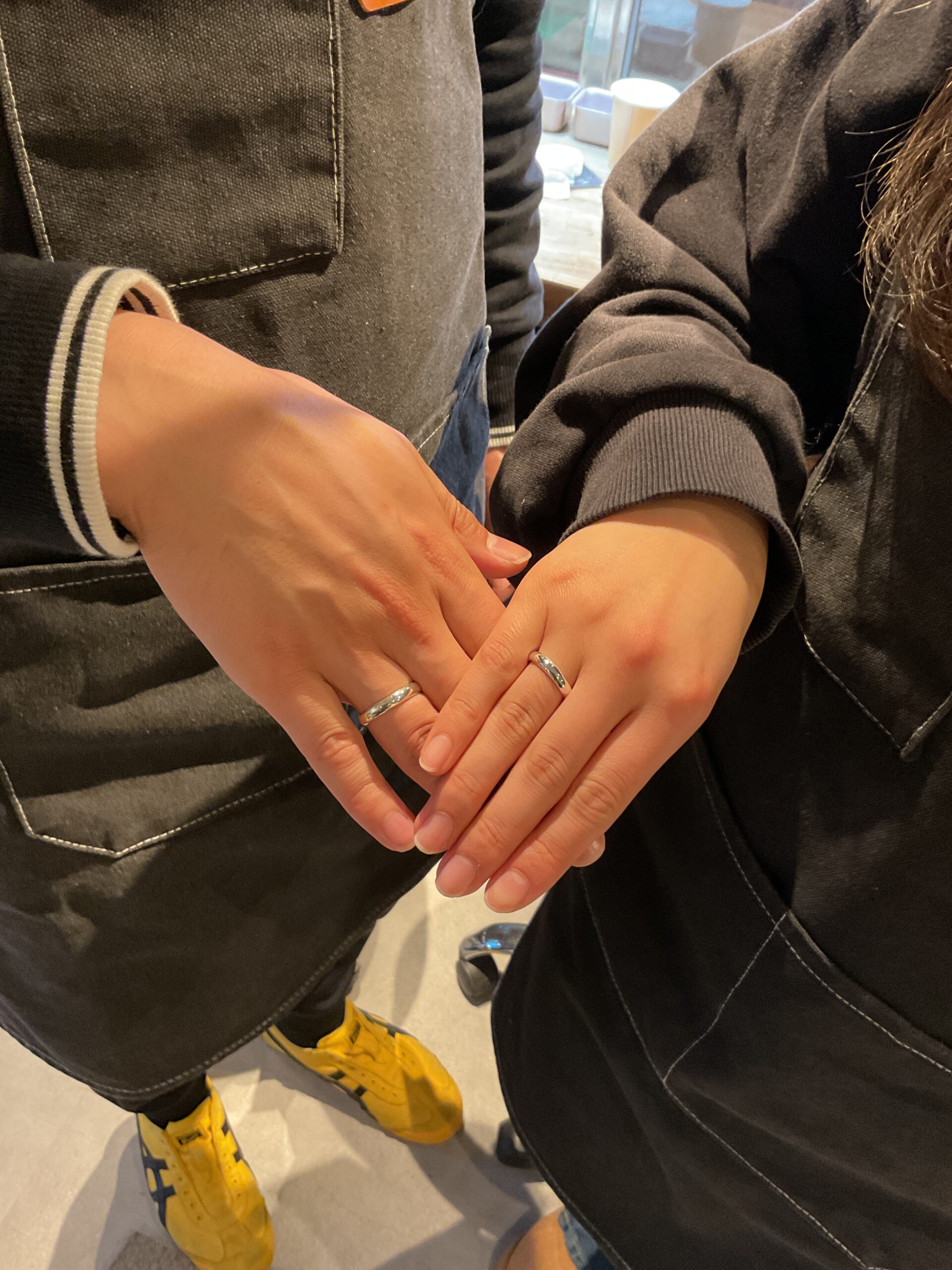 基本の形は4mmの甲丸リングにテクスチャーは鏡面とマットをお選びいただきました。
