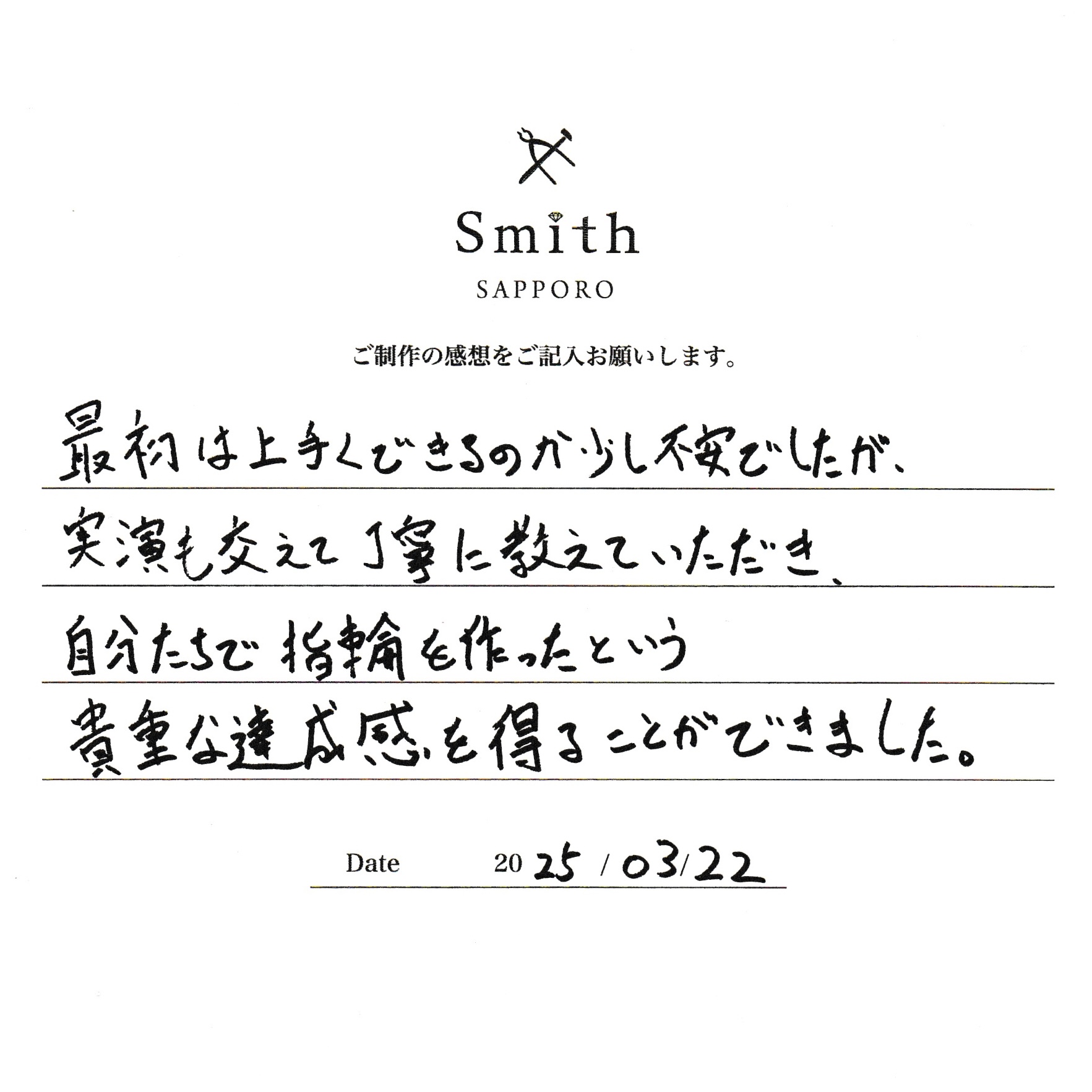この度は素敵な手作結婚指輪のご制作をいただきまして誠にありがとうございます。