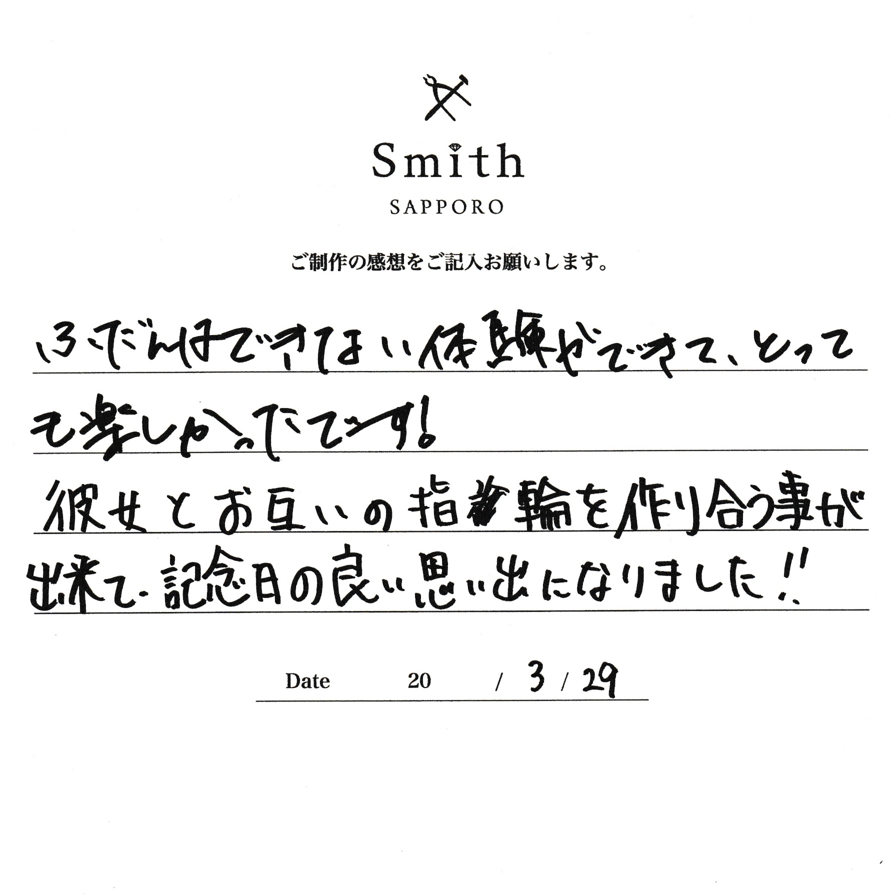 彼女とお互いの指輪を作りあうことが出来て記念日のいい思い出になりました!