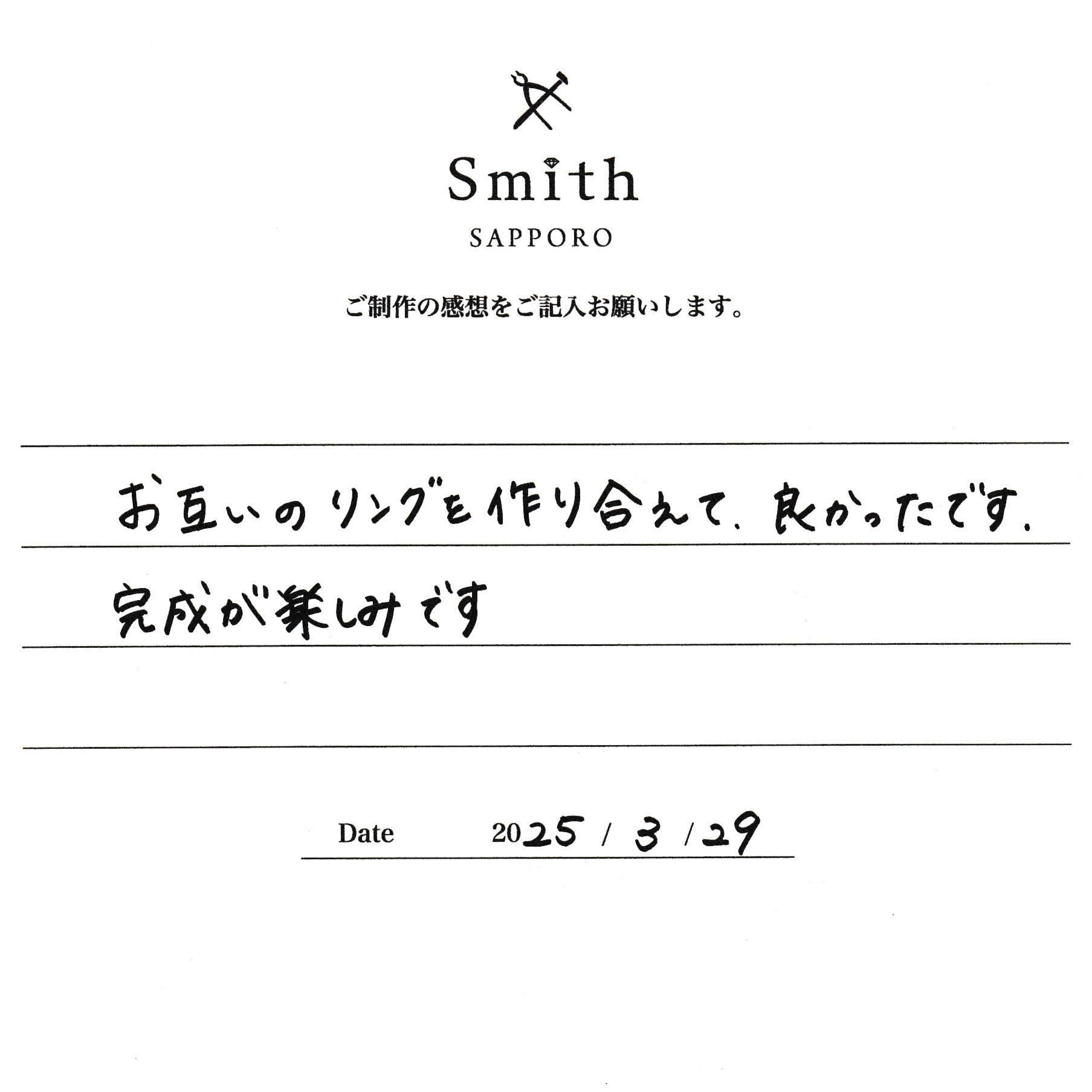 お互いのリングを作りあえて良かったです。
