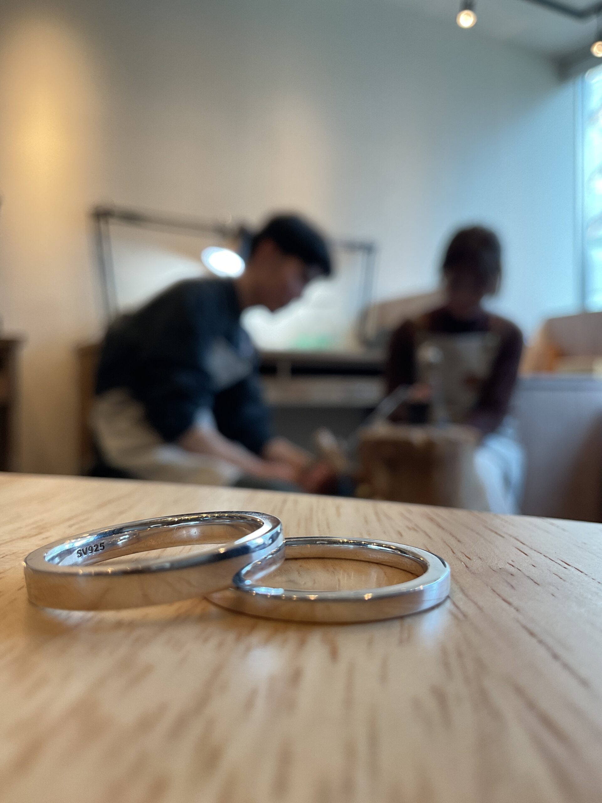 基本の形は2mmと3mmの平打ちリングにテクスチャーは鏡面とスターダストをお選びいただきました。