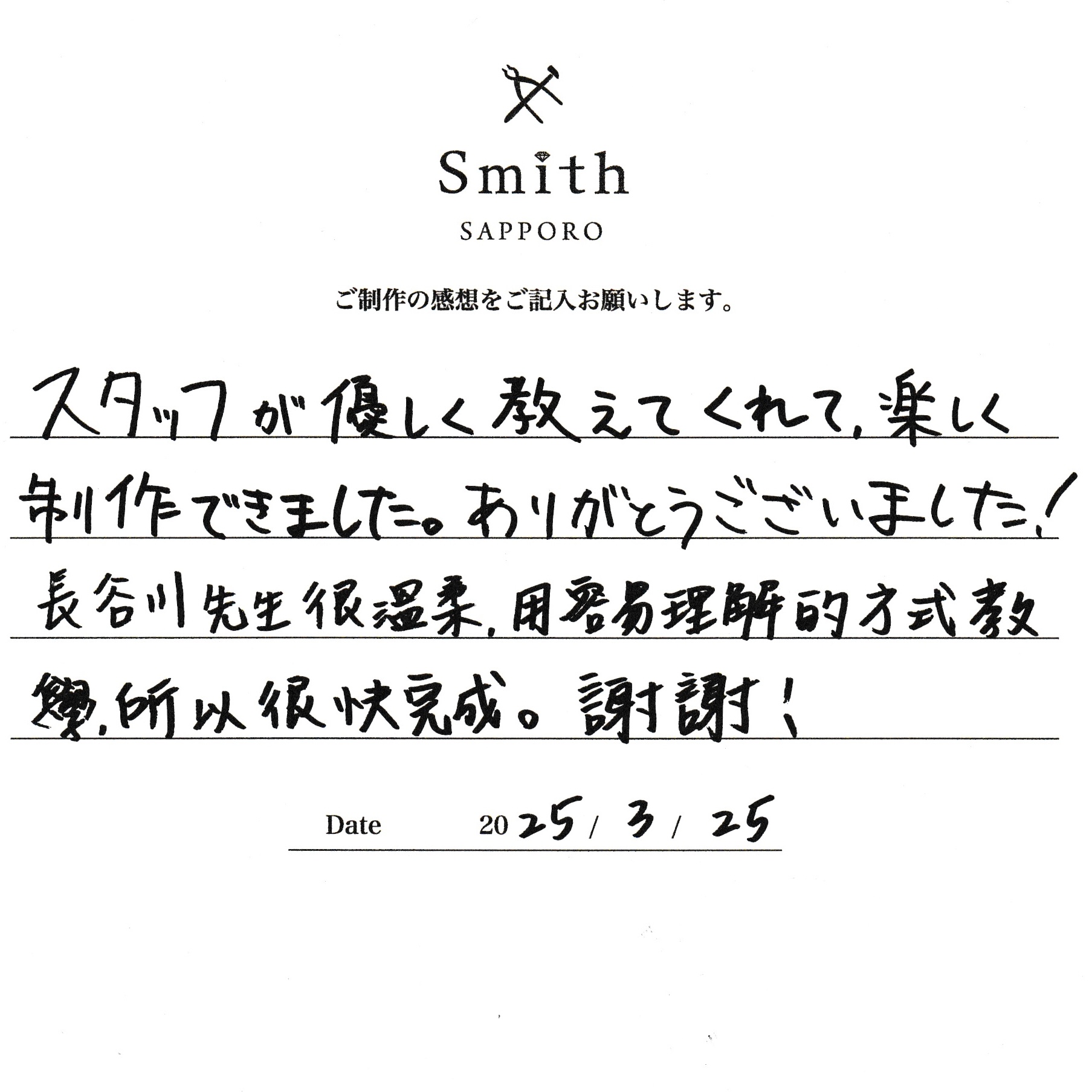 スタッフが優しく教えてくれて楽しく制作できました。