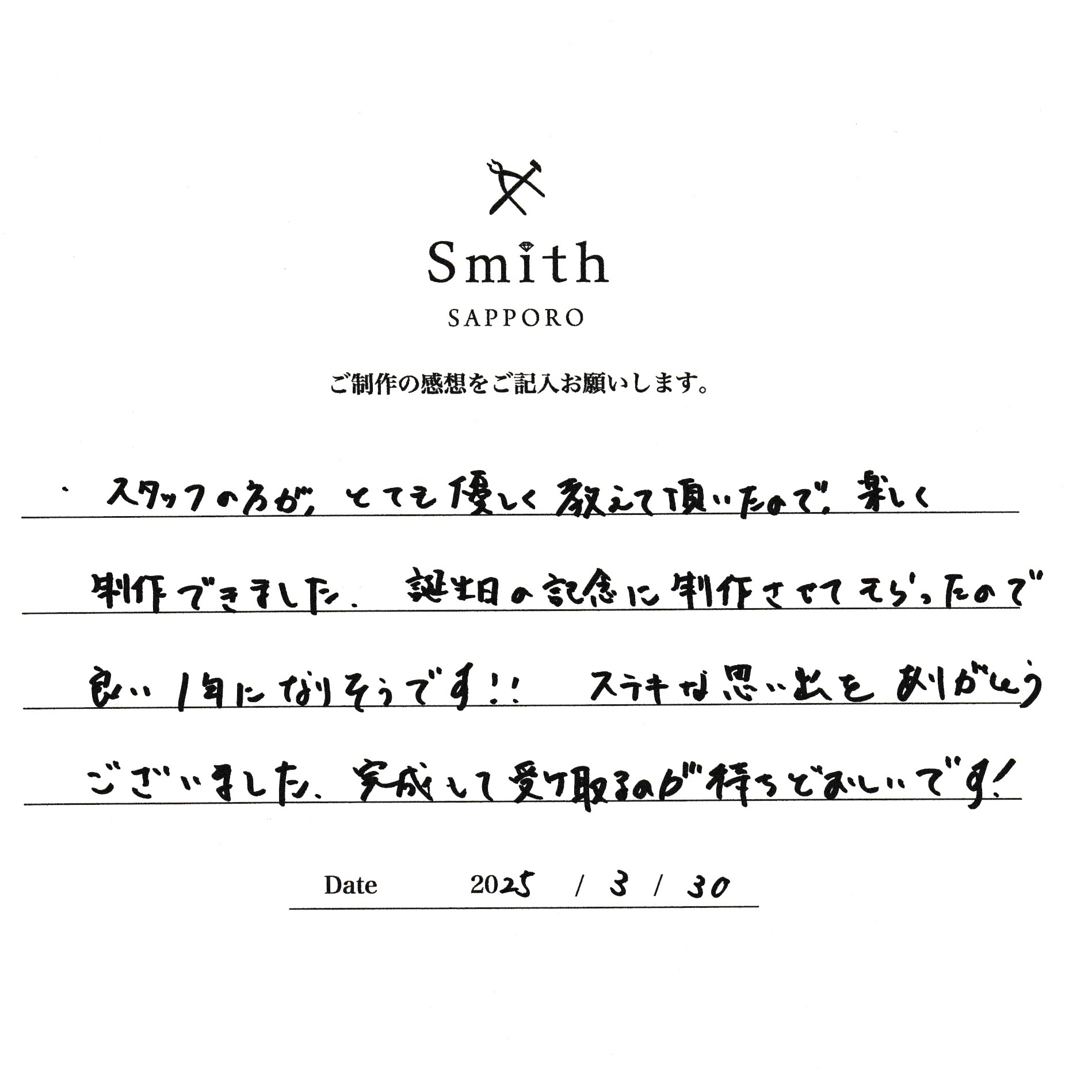 S様・K様【誕生日の記念に制作させてもらったので良い1年になりそうです】