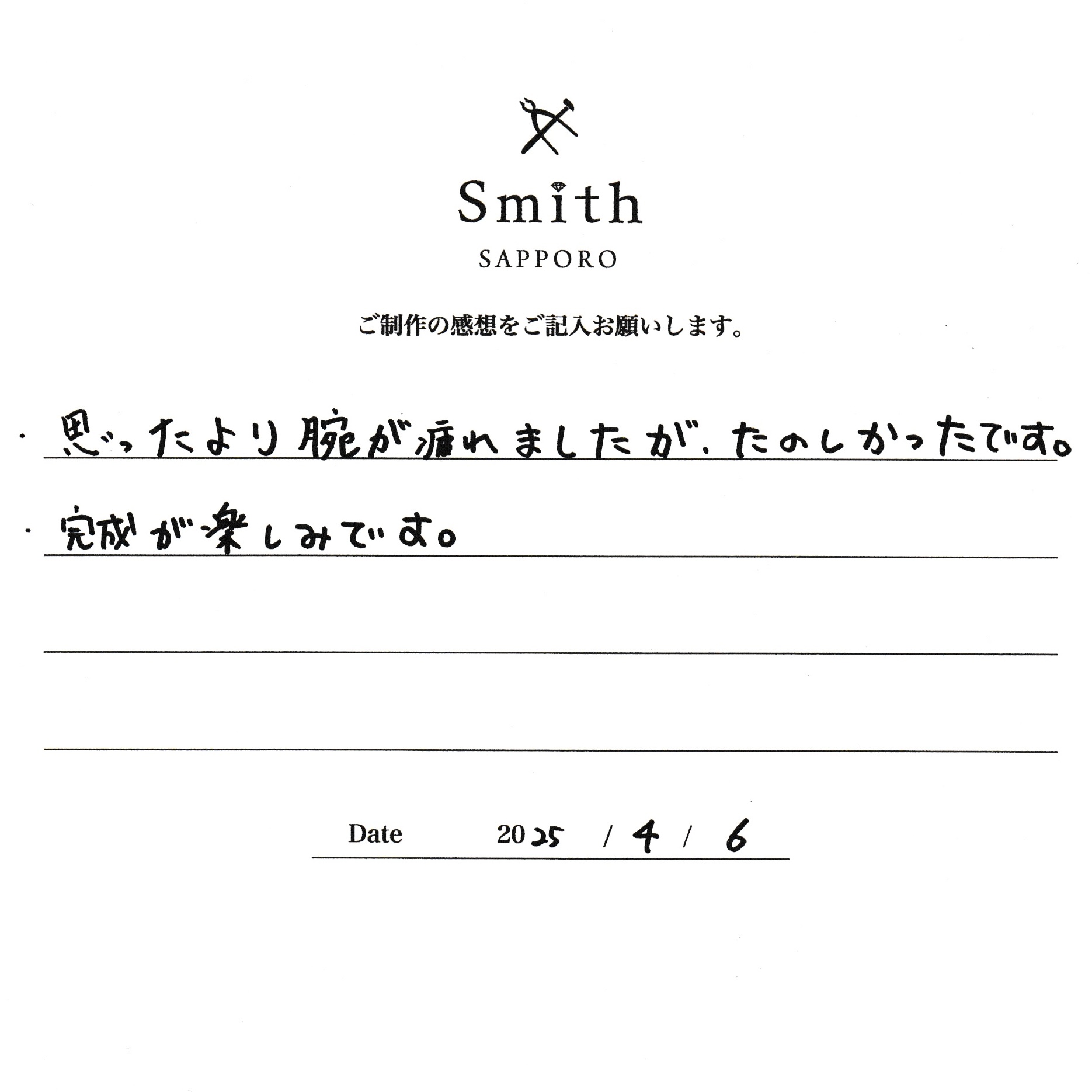 大切に加工させていただきますので、楽しみにお待ちくださいませ。