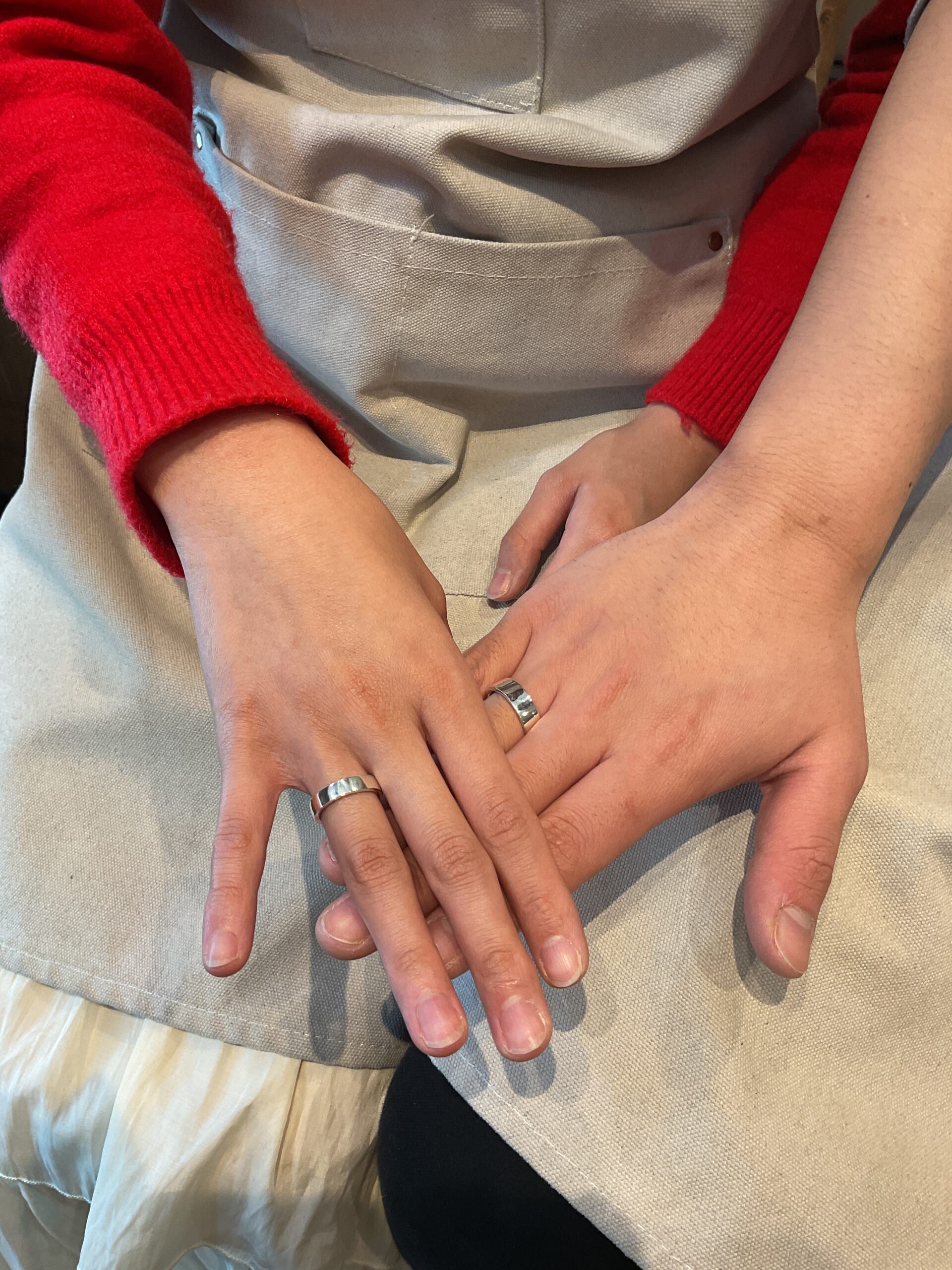 基本の形は4mmと6mmの平打ちリングにテクスチャーは鏡面をお選びいただきました。