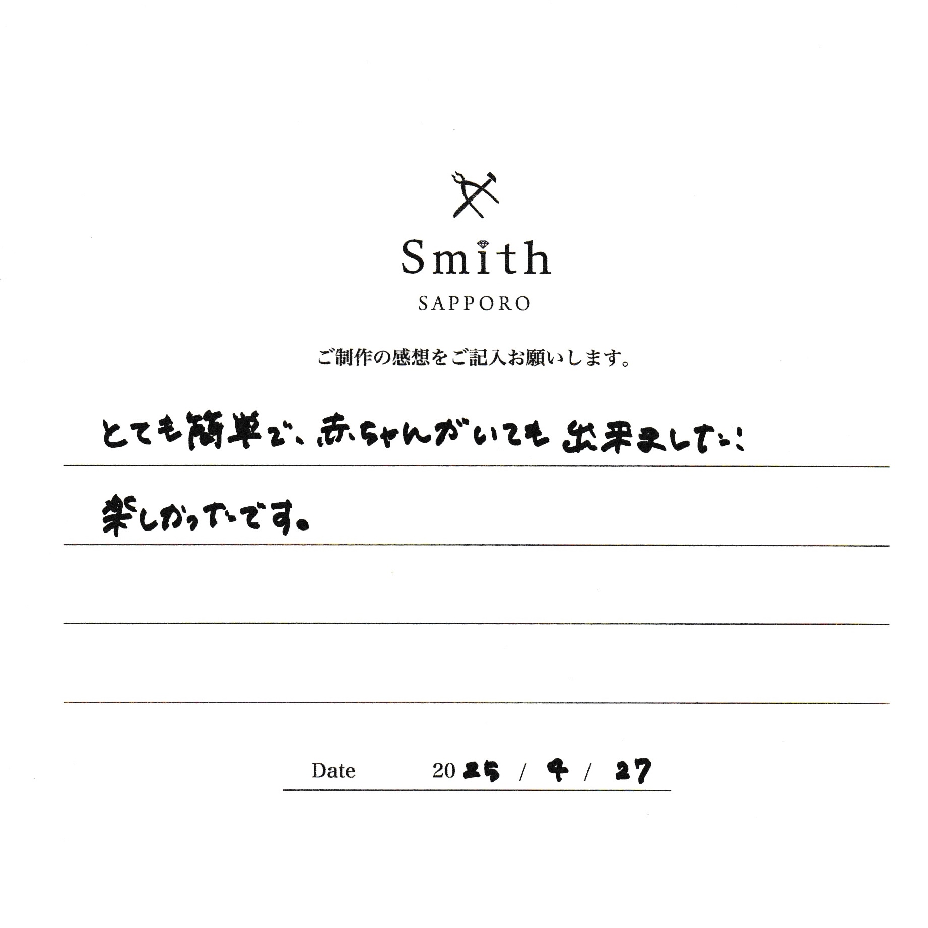 本日は、ご家族の大切な指輪のご制作に工房スミス札幌店をお選びいただきありがとうございます。