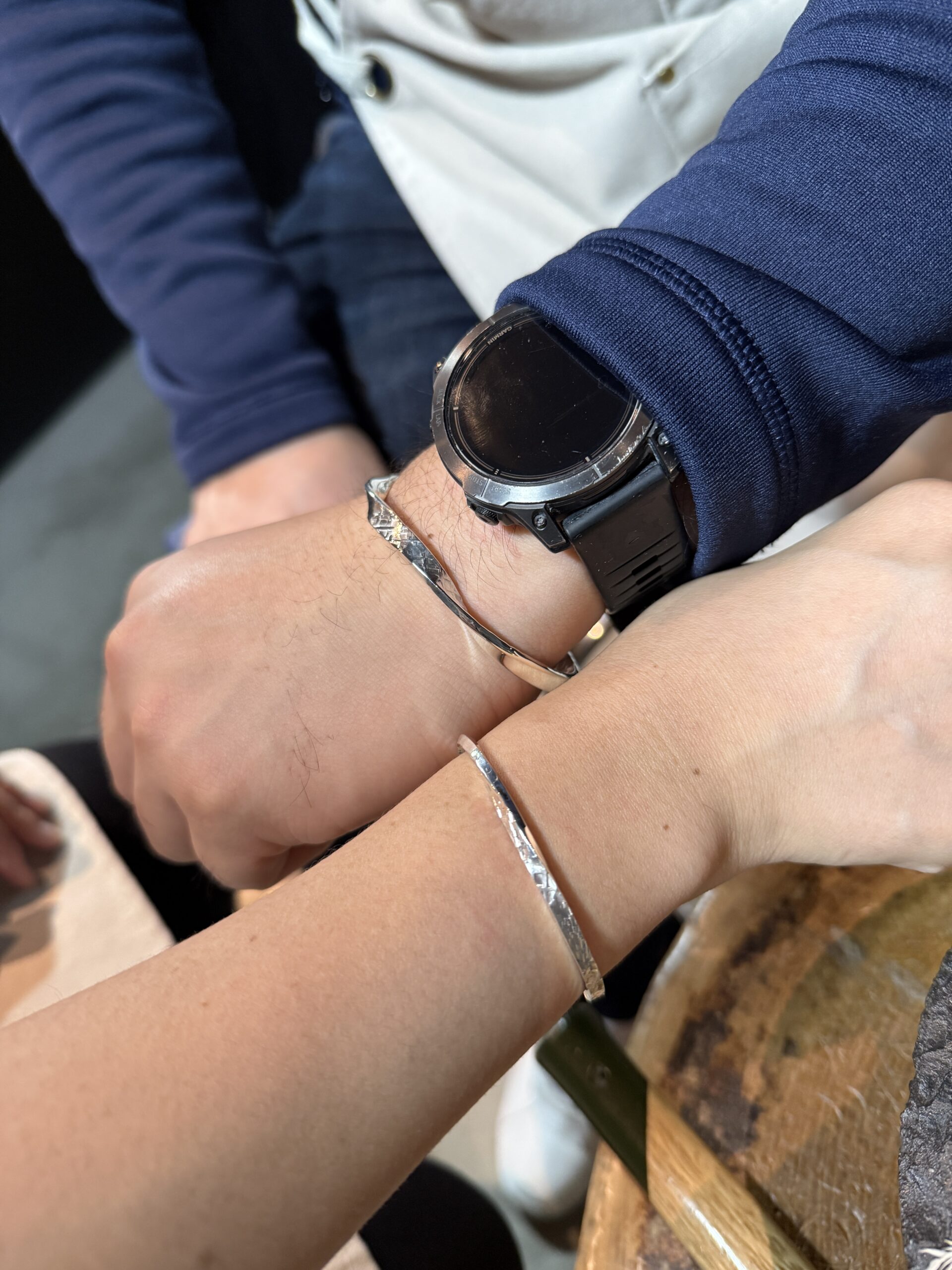 バングルは、それぞれに似合った幅を選んでくださり、デザインは、同じハンマー&メビウスでしたが、ひねり具合をそれぞれ変えて作ったので、個性が出ていて素敵でした!