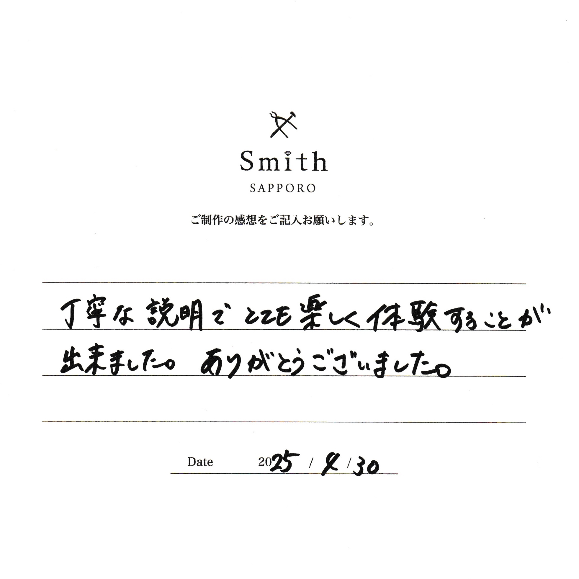 M様【とても楽しく体験することができました】
