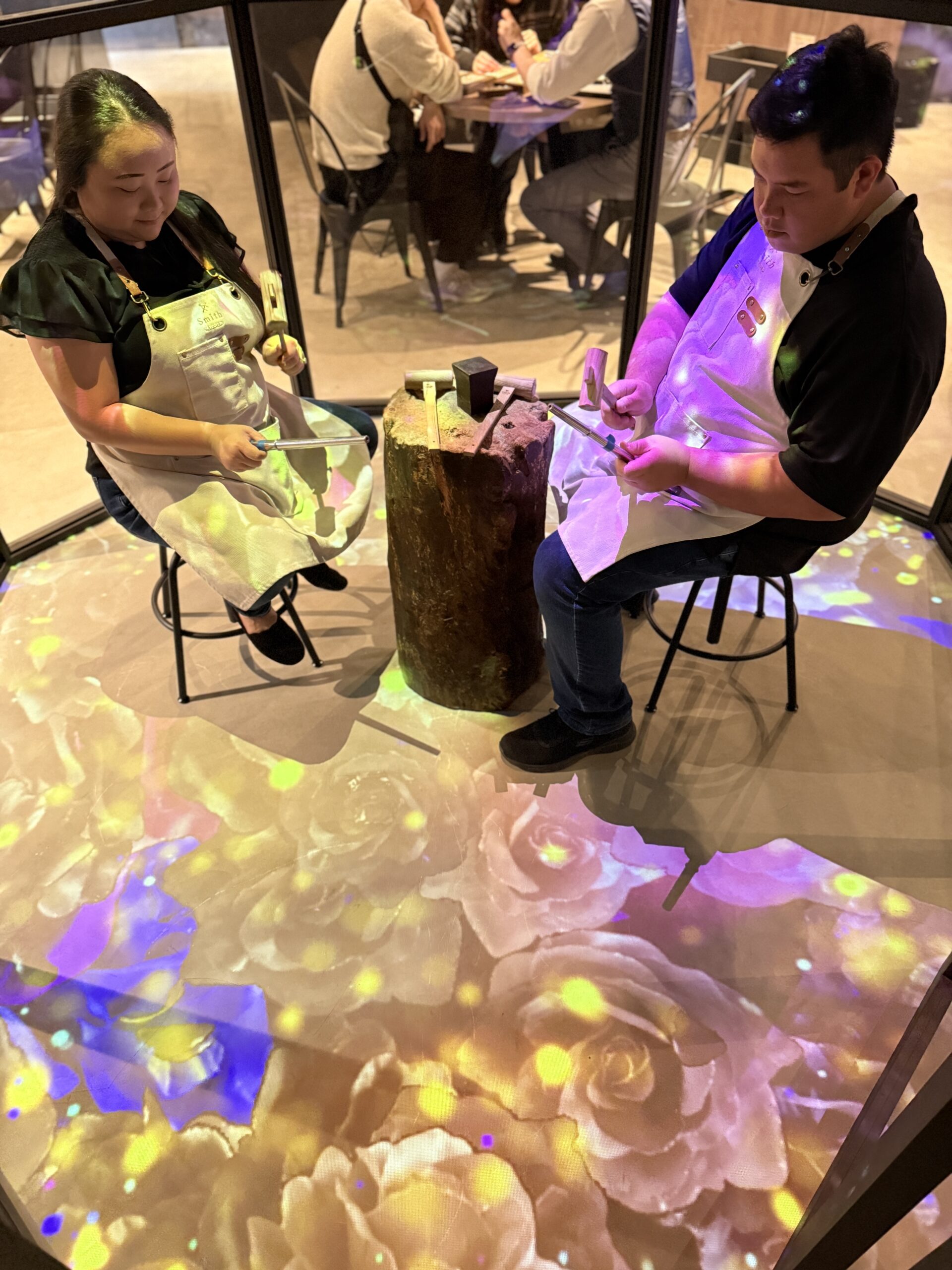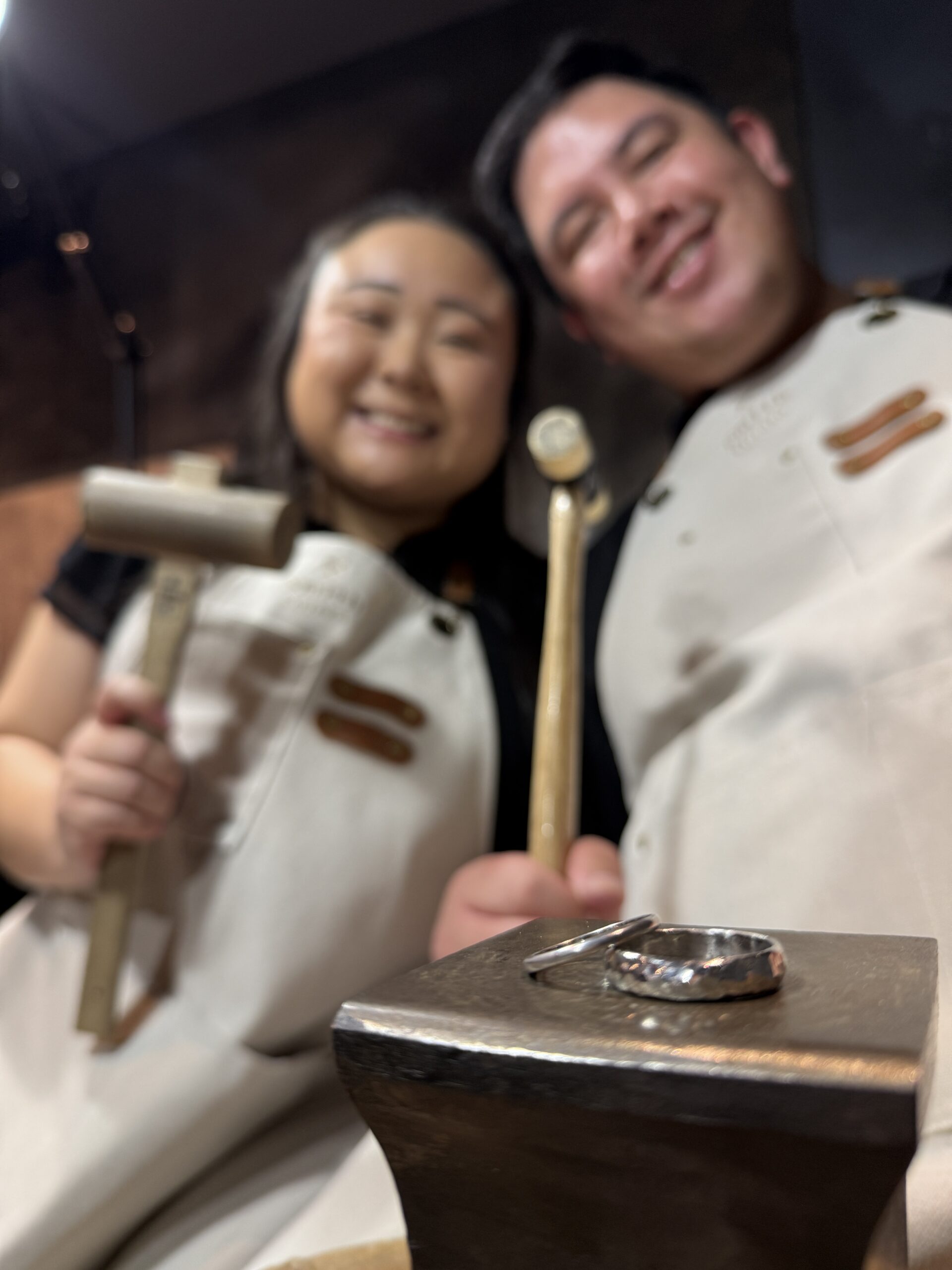 制作では指輪を交換して、お互いの指輪を作ってくれました。叩く作業が大変そうでしたが、とても上手に完成しましたね!