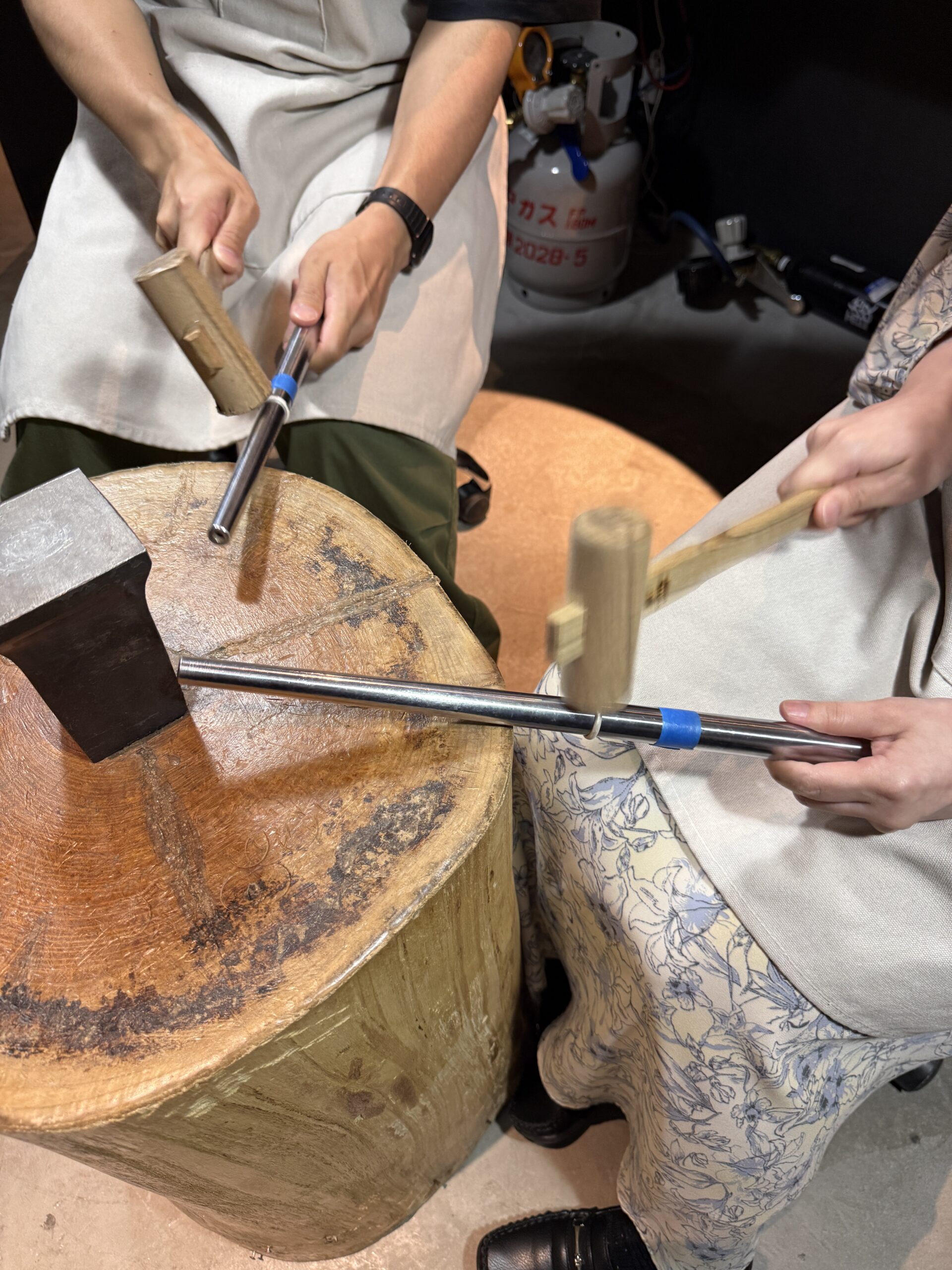 制作中は終始楽しそうな笑顔が印象的で、ハンマー作業も大変な中、一生懸命助け合いながら頑張ってくださった姿が印象的です。
