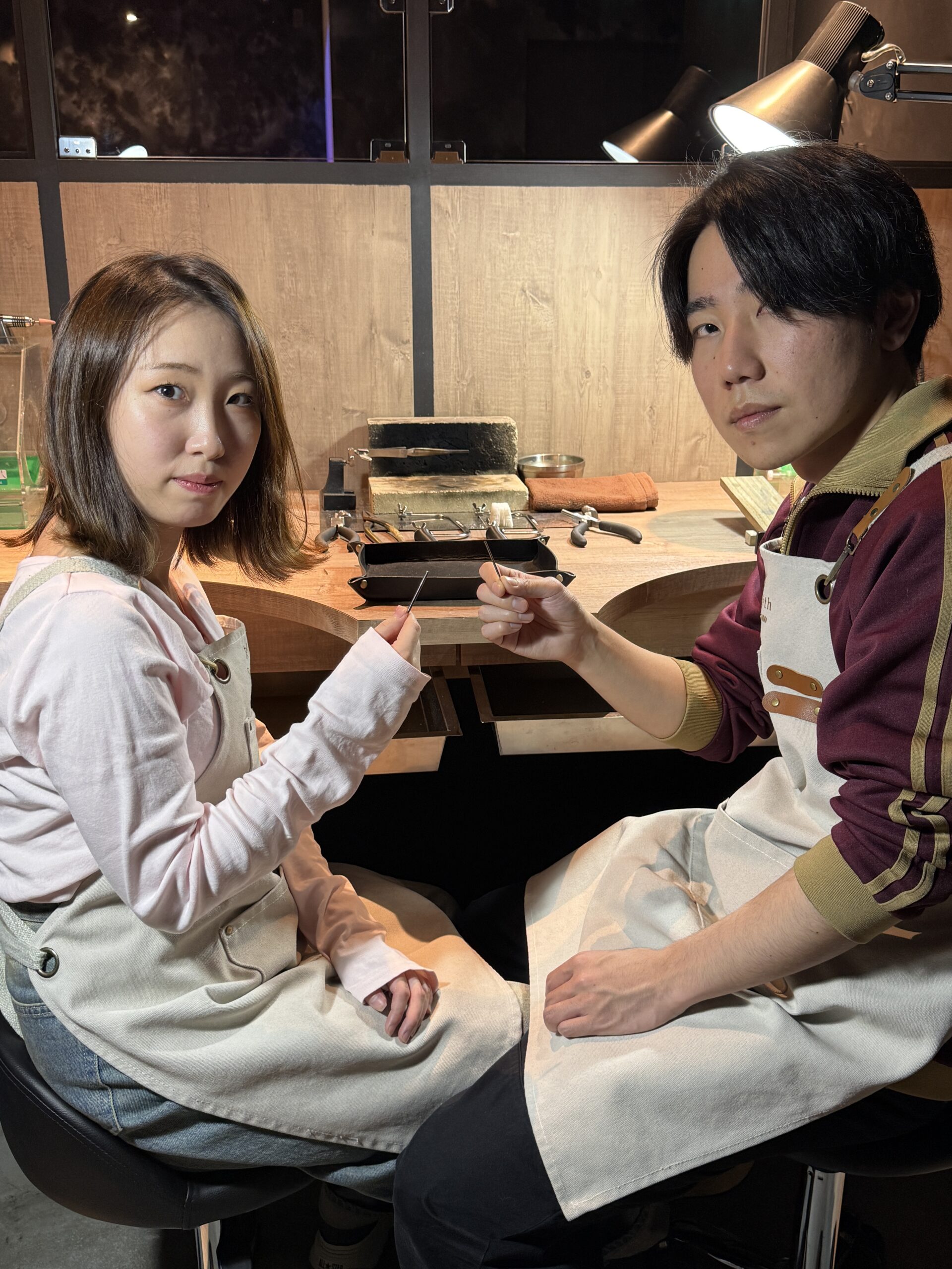 職人気質のご主人。真剣に指輪作りに取り組まれる姿が印象的で、奥様はテキパキとした手際の良さで、二人三脚で指輪が完成した瞬間を見守ることができました。