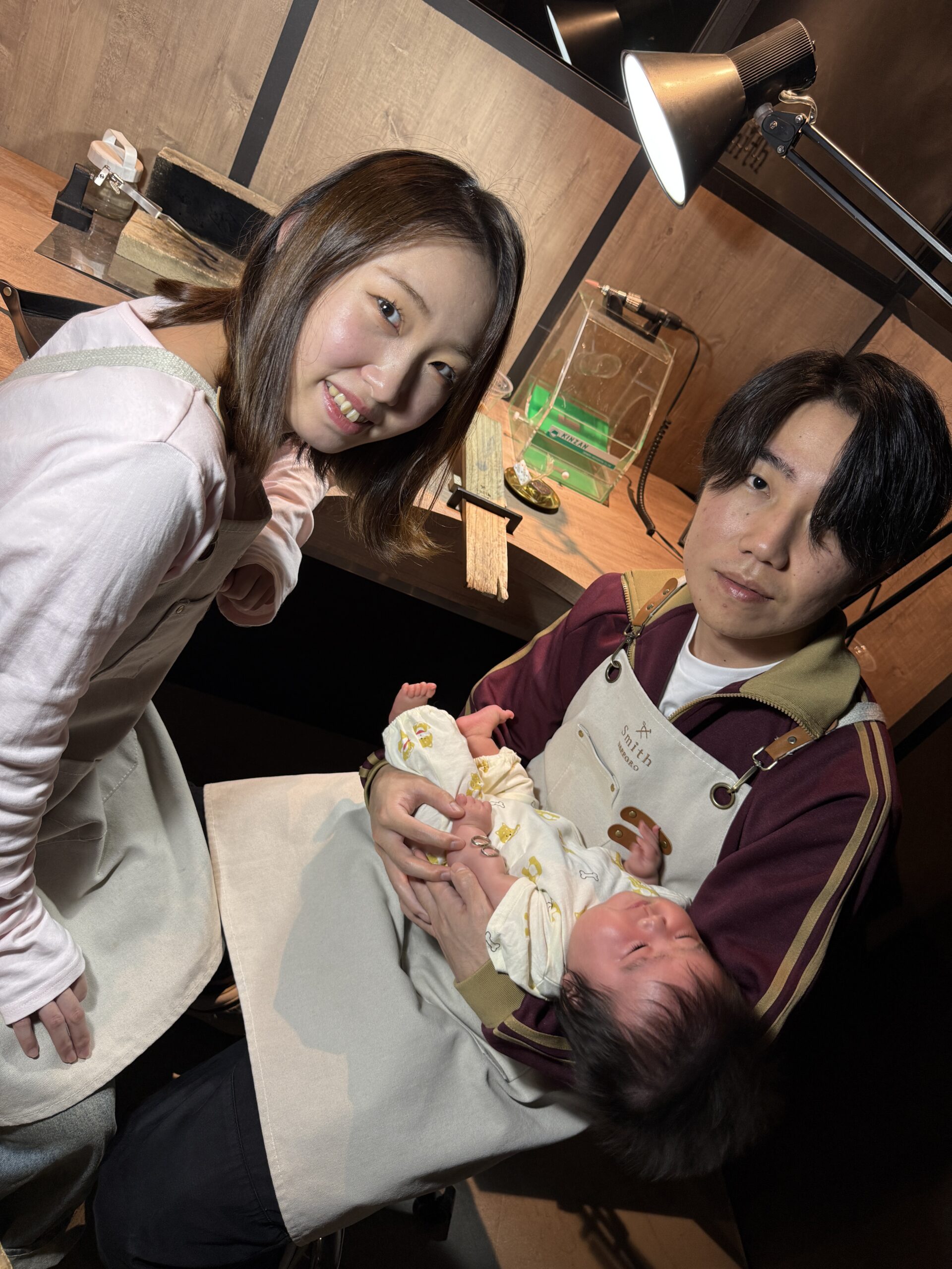 ご夫婦と赤ちゃんの笑顔が溢れる中、指輪制作をお手伝いさせていただいたこと、大変光栄に思っております。