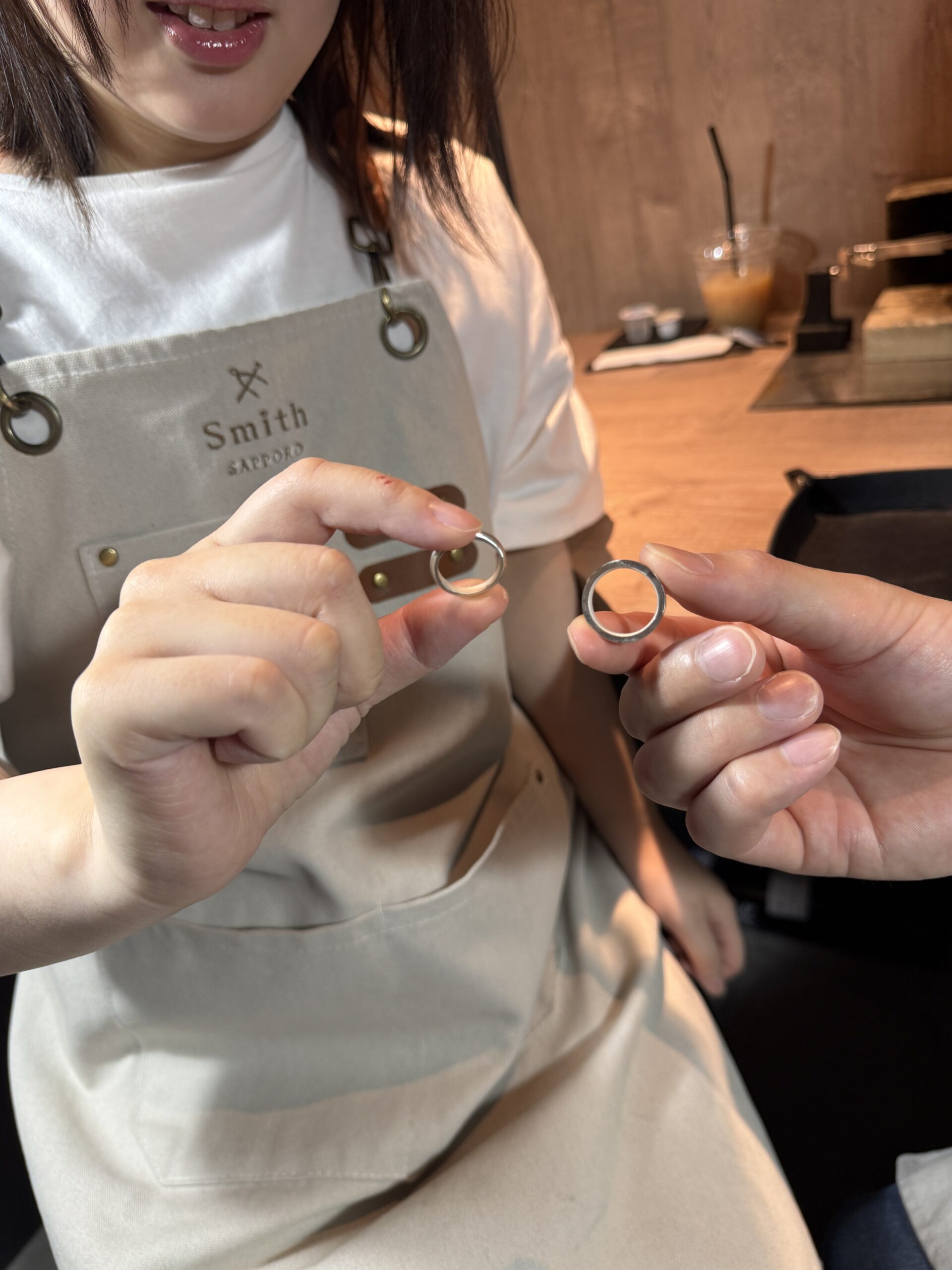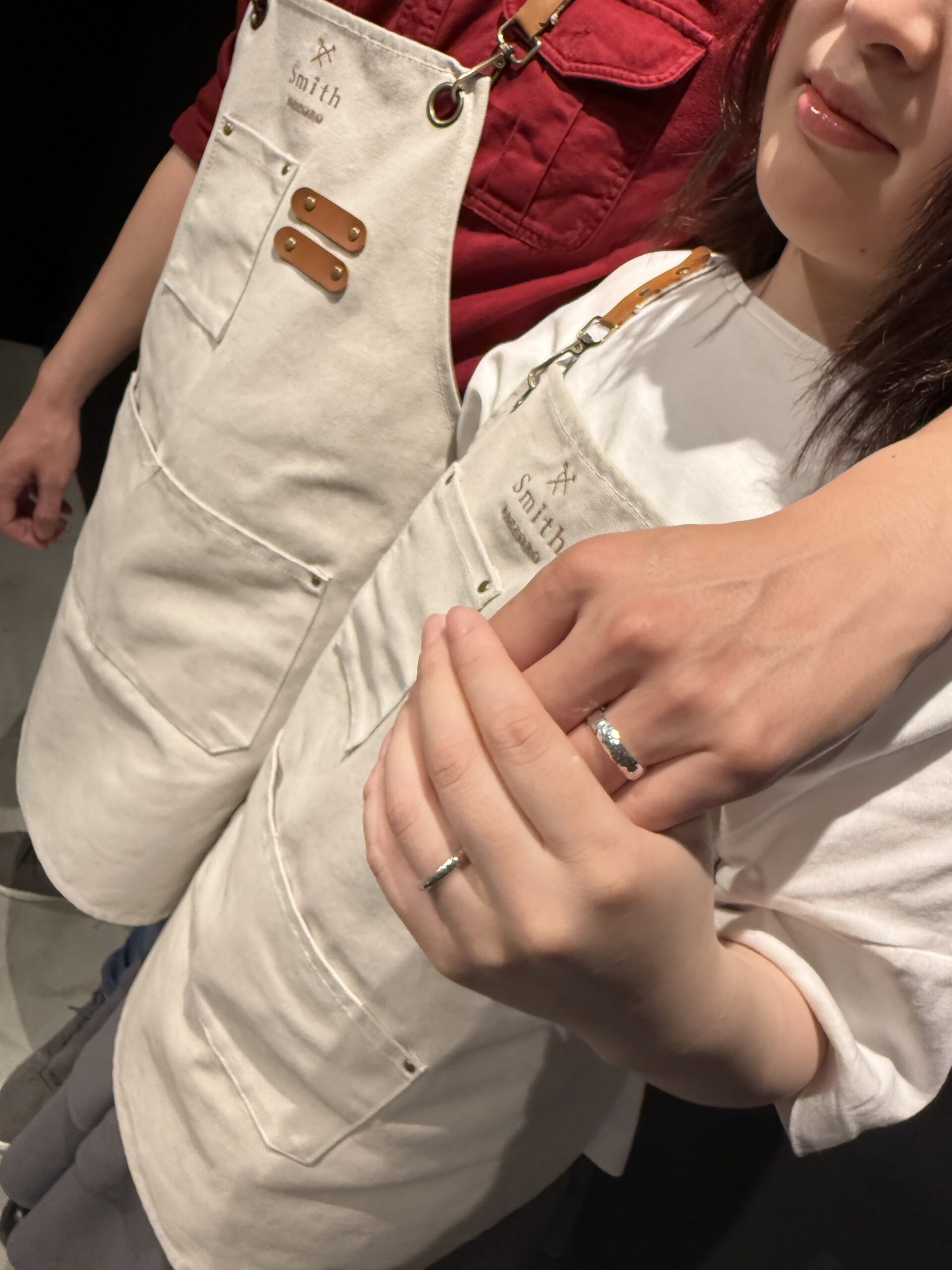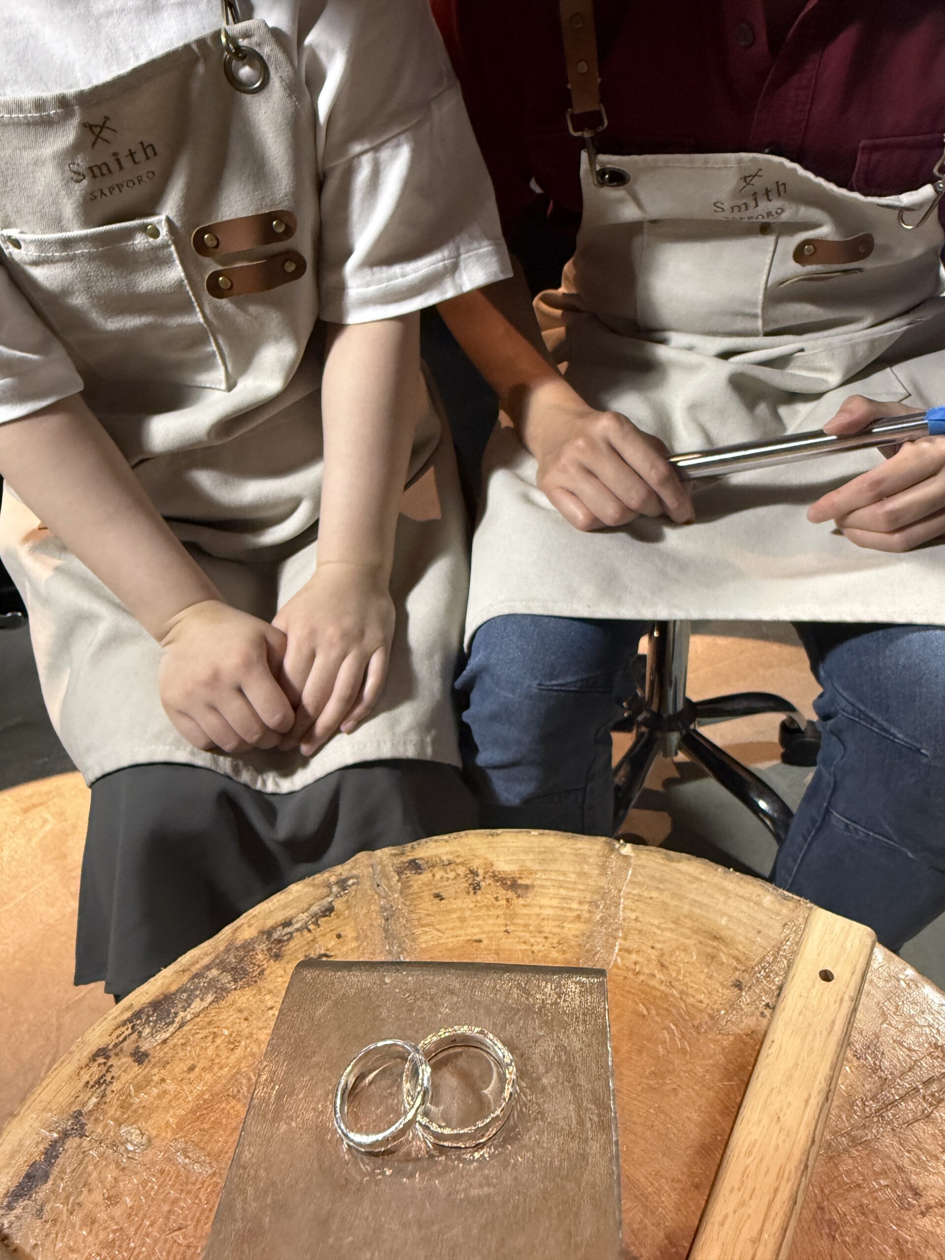 穏やかな雰囲気のお二人が、心を込めてリング作りに取り組まれている姿が印象的でした。丁寧に作業を重ねていただき、お二人の絆がより深まるような素晴らしいリングが完成したことを光栄に思います。