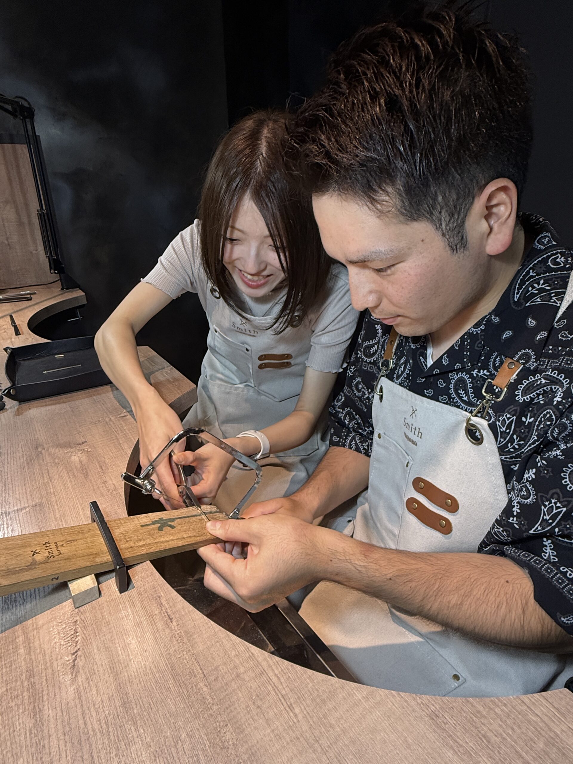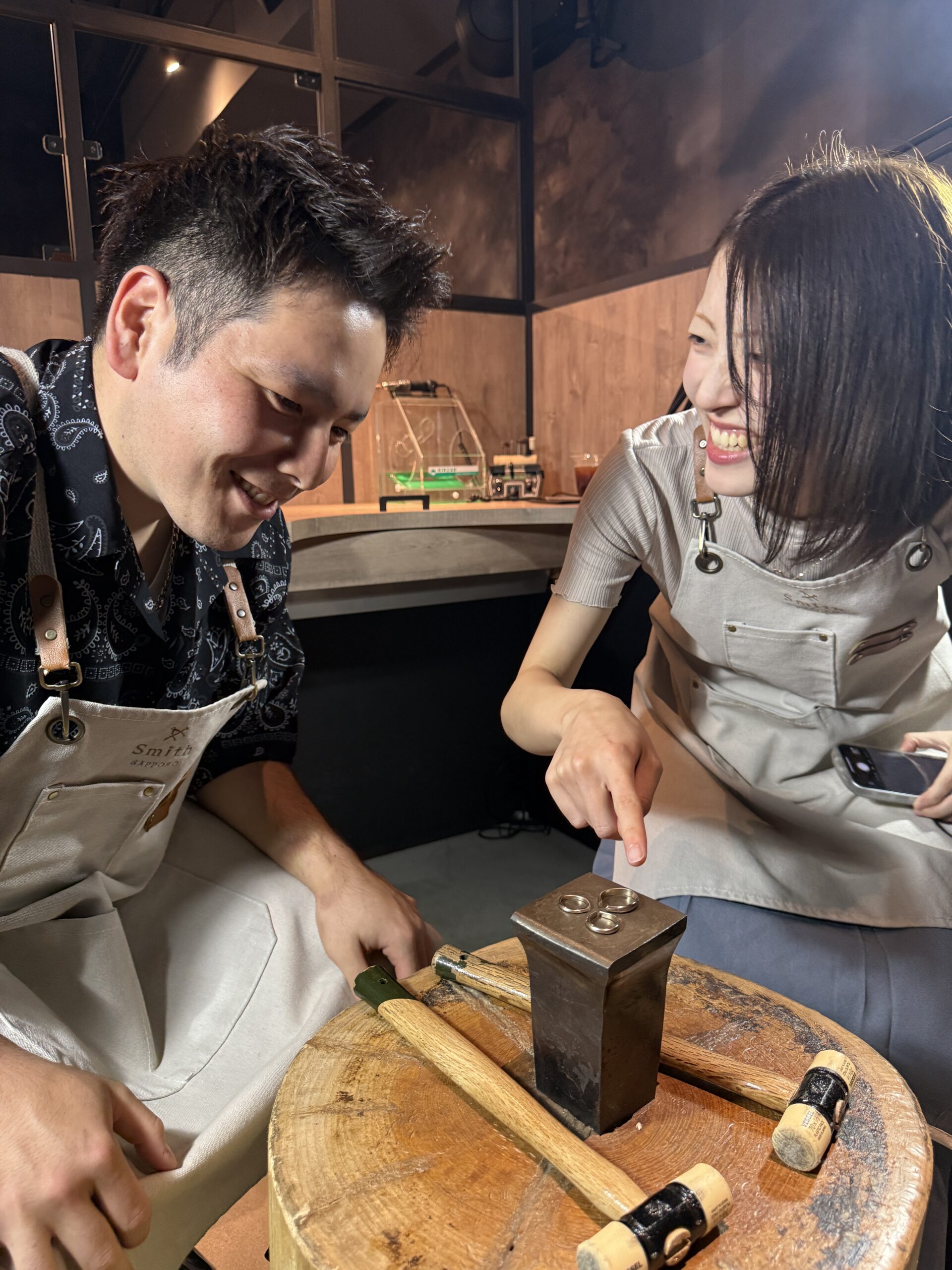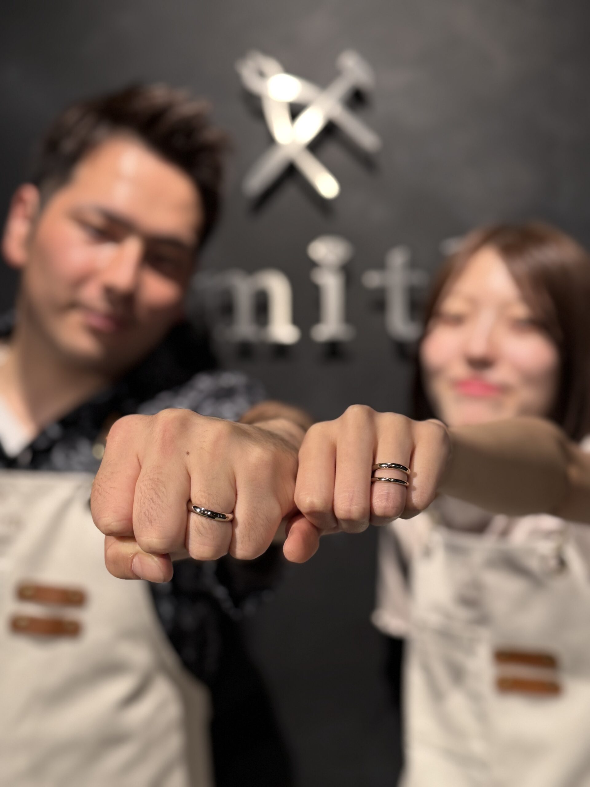明るくノリのいいお二人。製作中も楽しそうに取り組まれている姿がとても印象的でした。慎重でとても丁寧な作業のおかげで、どちらの指輪もとっても美しく綺麗に仕上がりましたね。