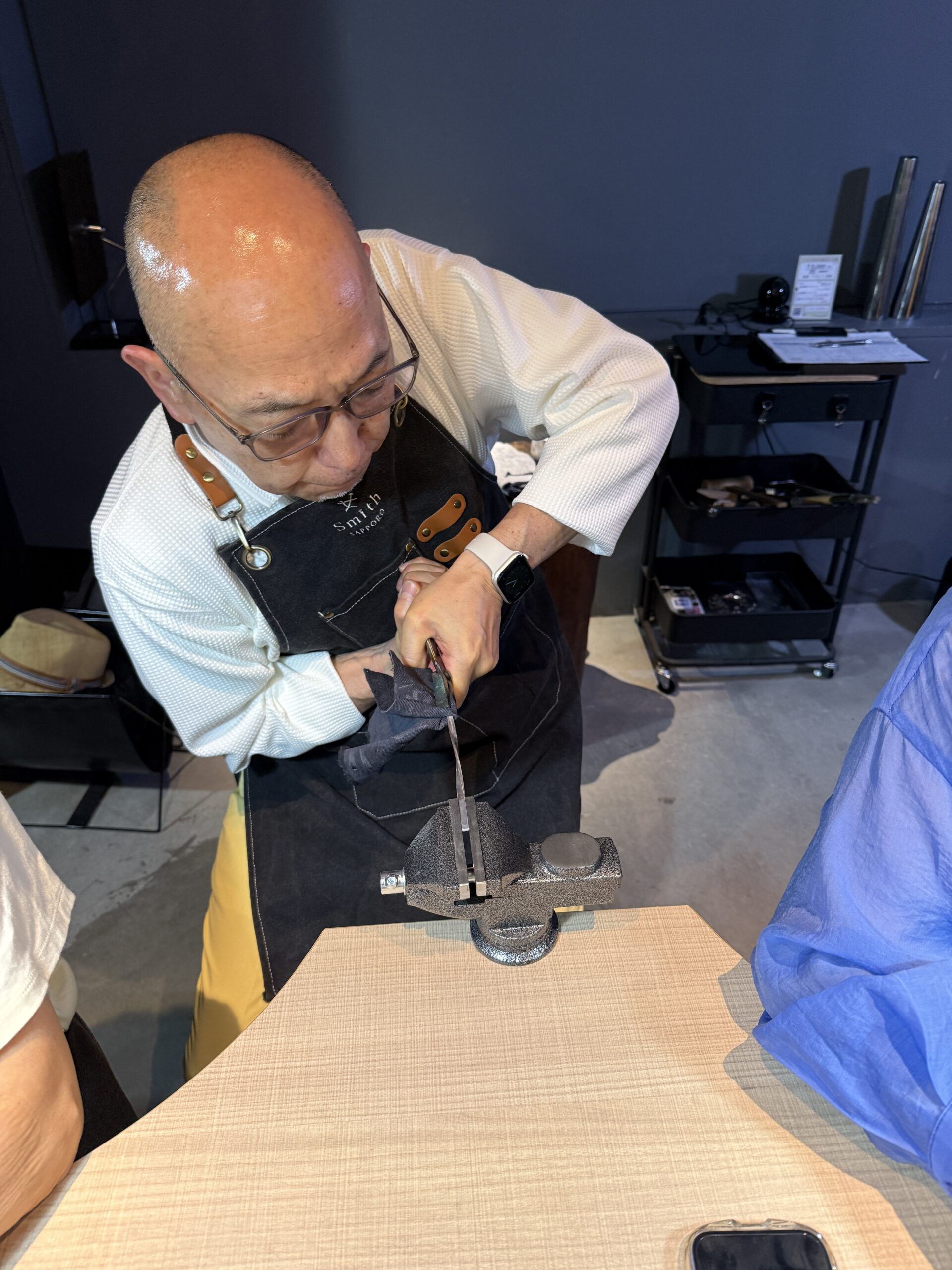 お父様はとても器用で、職人さんの様で素敵でした!皆様、難しいバングルを捻ったデザインでしたが、捻りもバランスが良く、素敵な出来上がりでした。