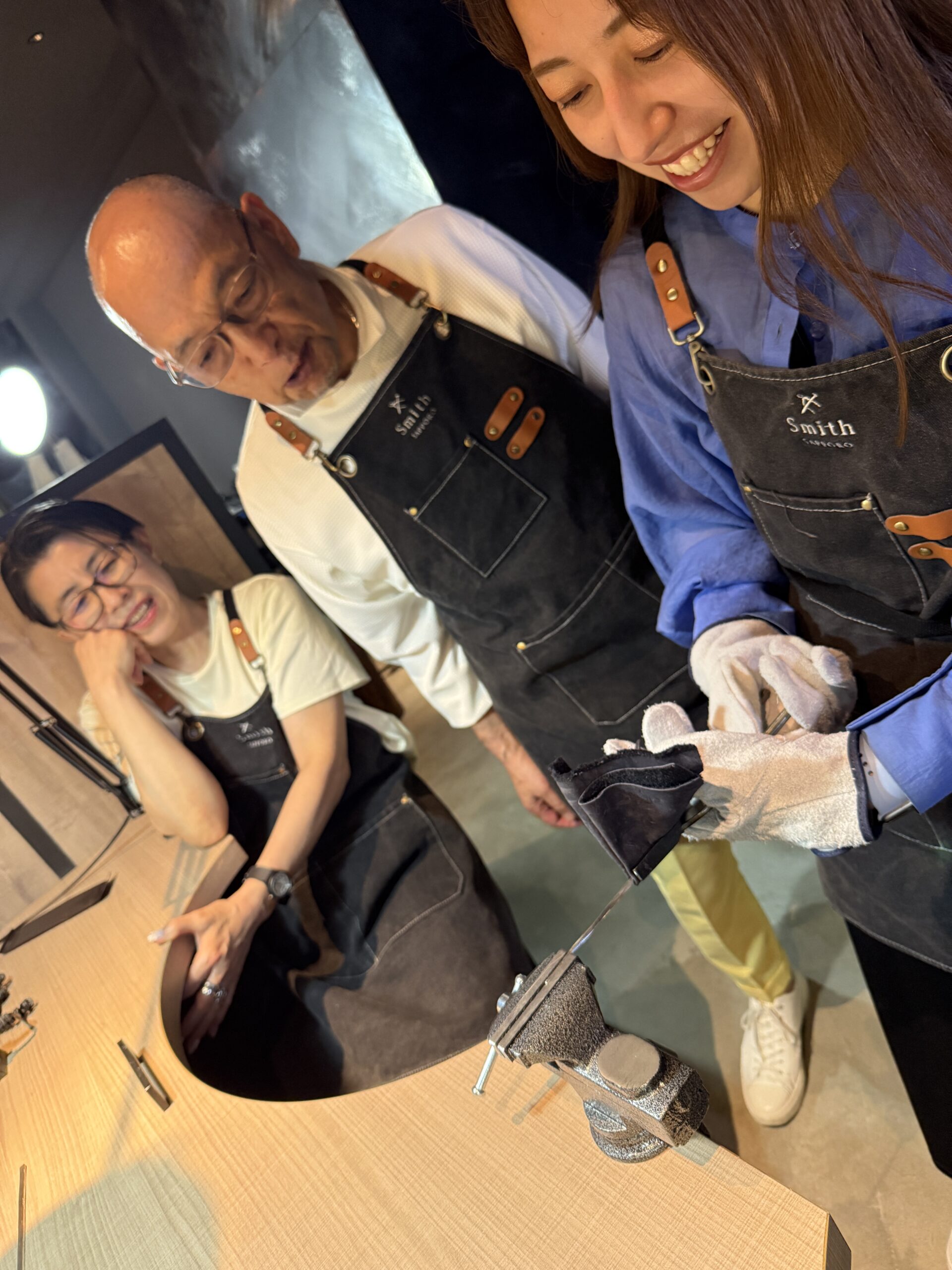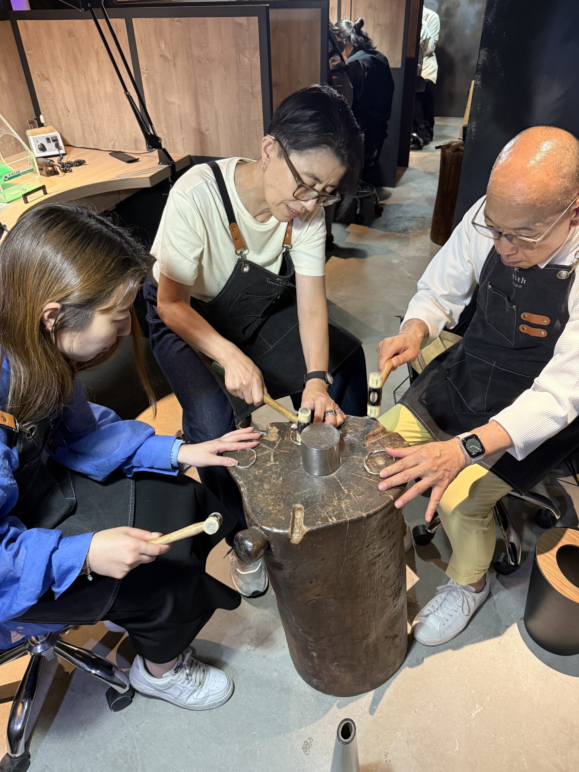 家族で北海道に、遠方よりご旅行の初日にご来店くださり、家族3人仲良くバングルを手作りして下さいました。