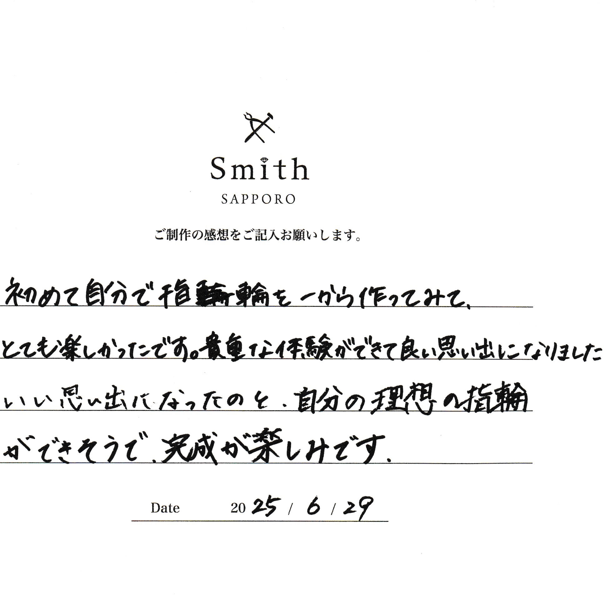 この度は工房Smith札幌店にご来店いただきまして、誠にありがとうございました。