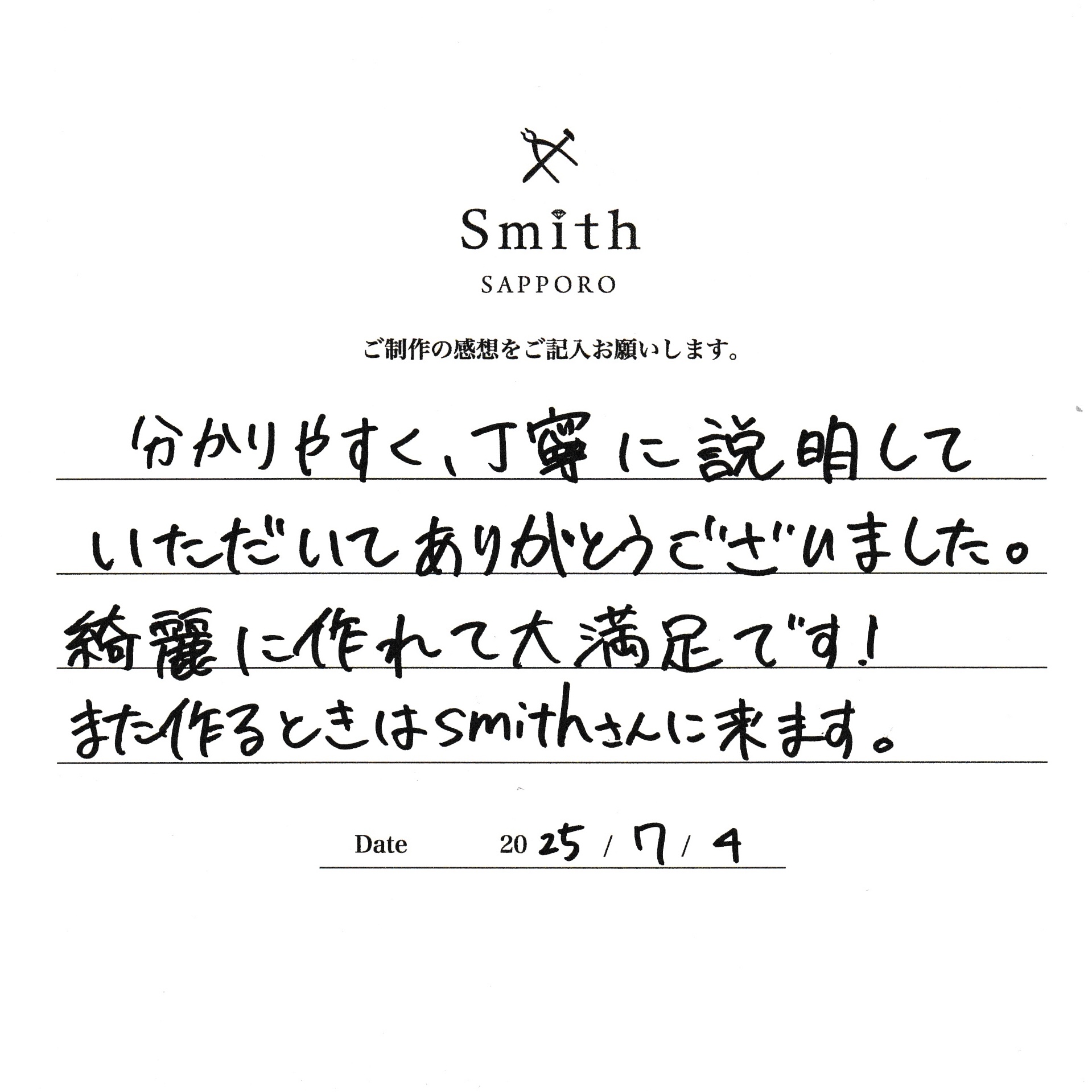 また作る時はSmithさんに来ます。