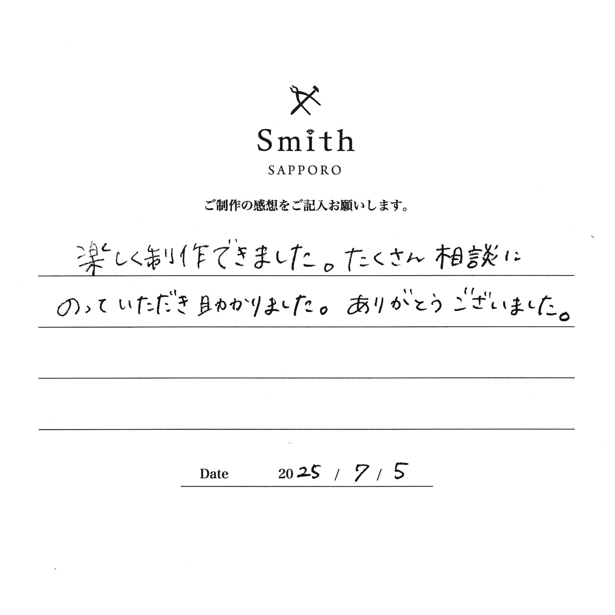 本日は数あるお店の中から大切なペアリングご制作に当店をお選びいただきありがとうございます。