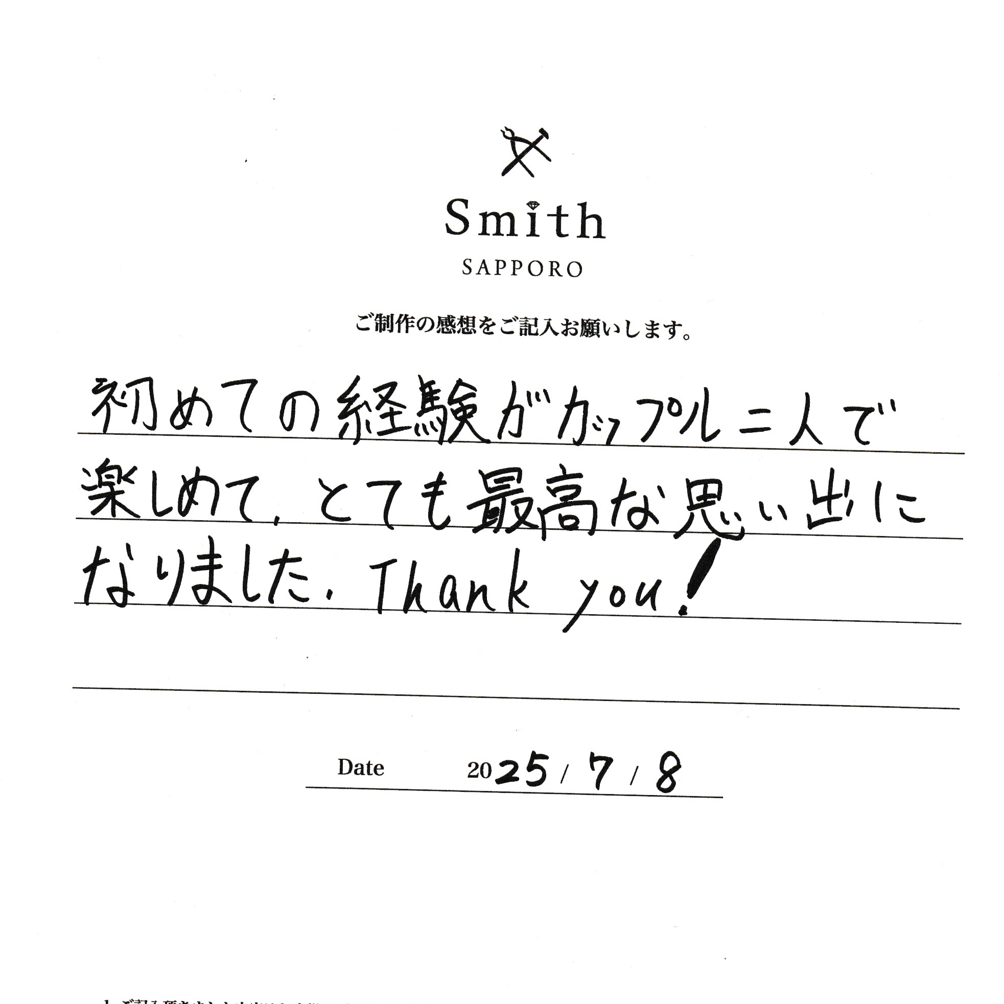 本日は数あるお店の中から大切なペアリングご制作に当店をお選びいただきありがとうございます。