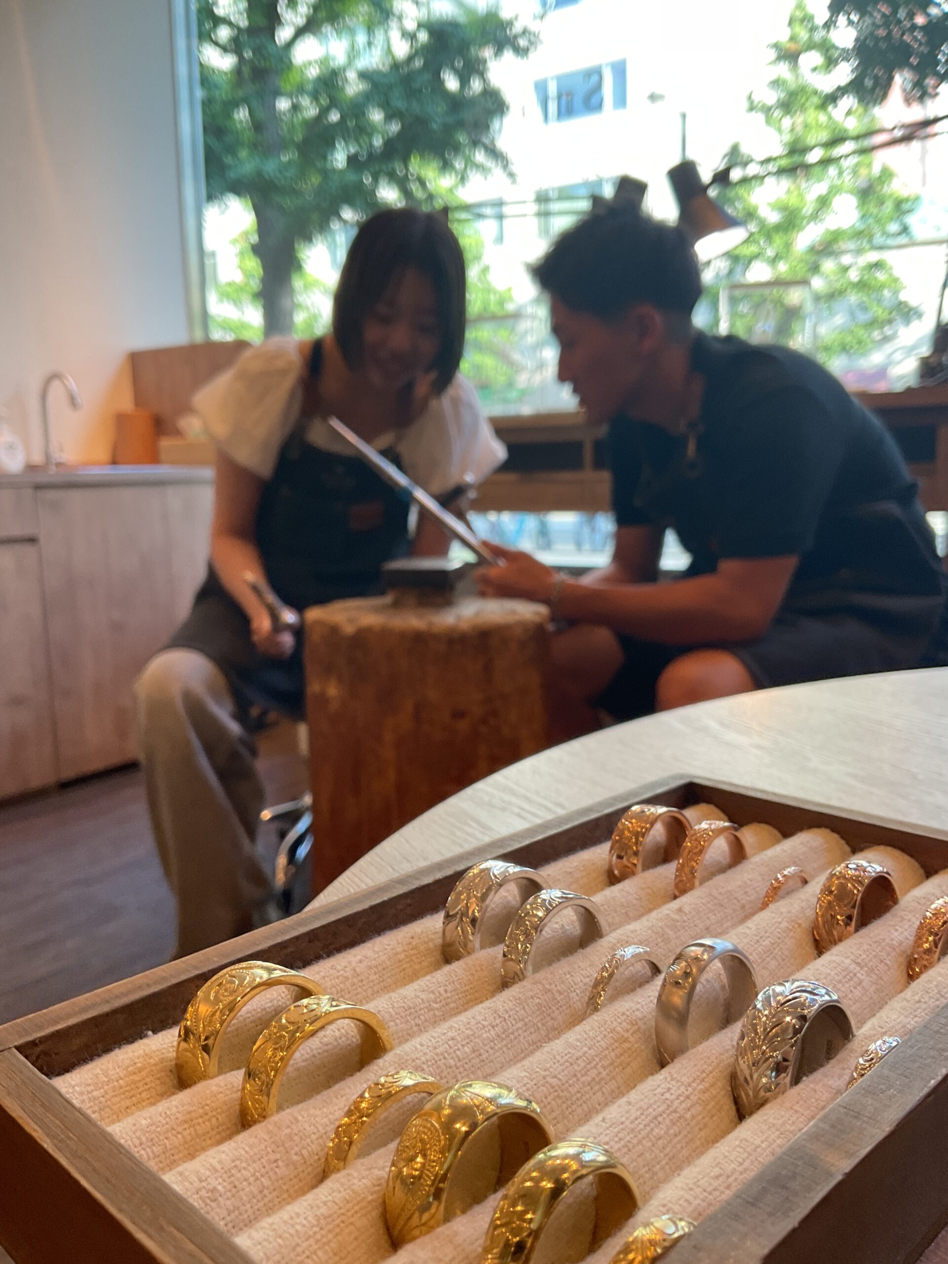 内側にはお二人の記念日とお名前の刻印が入りました。