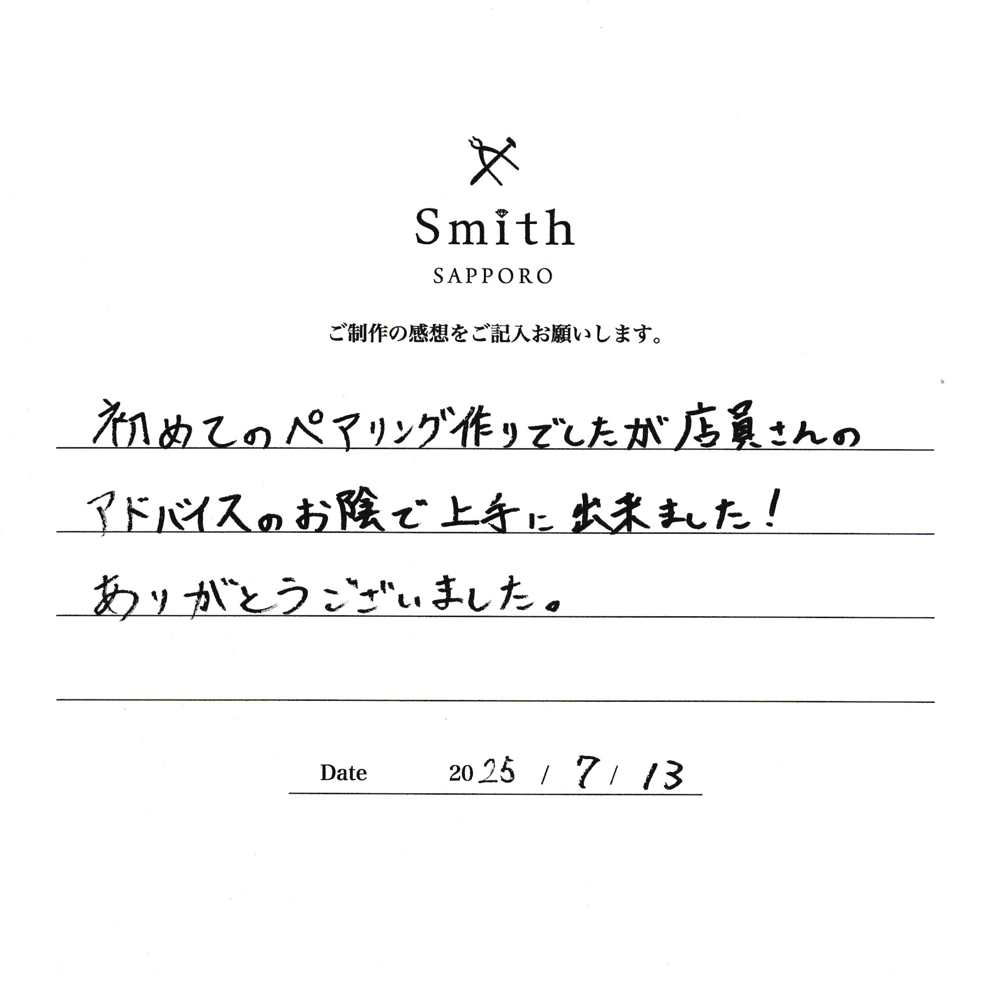 初めてのペアリング作りでしたが店員さんのアドバイスのお陰で上手に作れました!