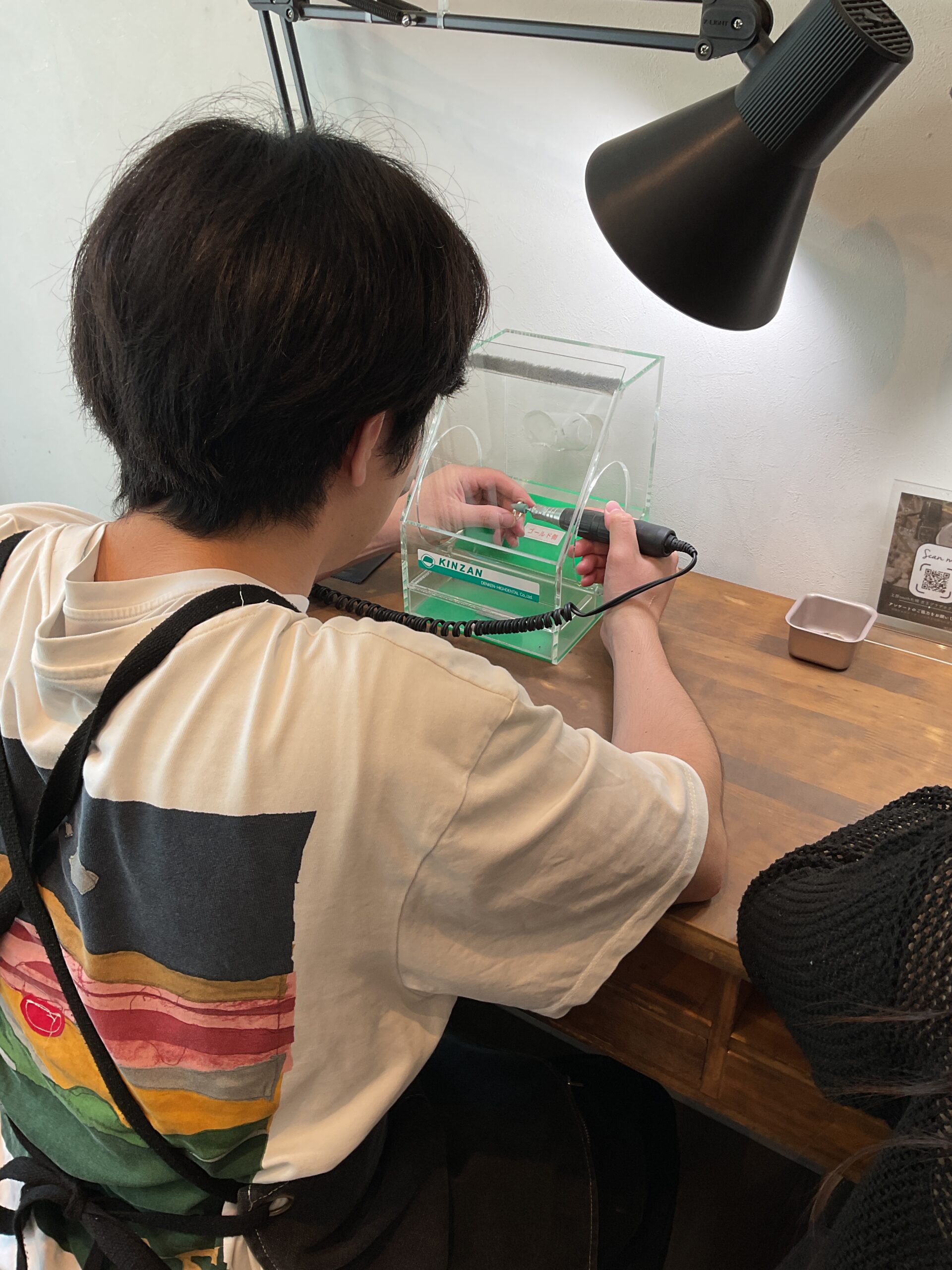文字の刻印が出来たり、ストーンが入れられたり、リングのデザインを決める所から楽しかったです!