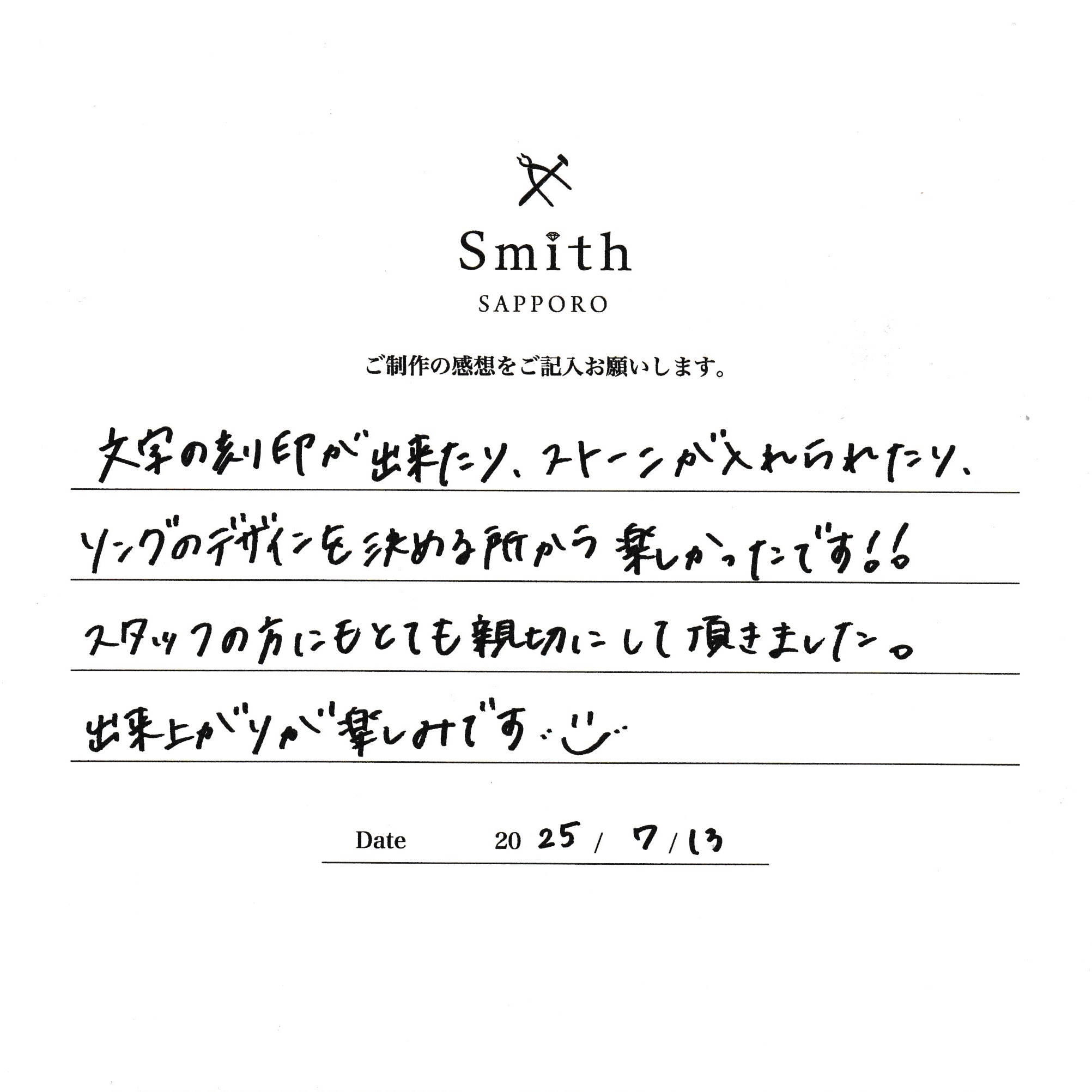 工房Smith札幌でお客様がご制作された指輪をご紹介