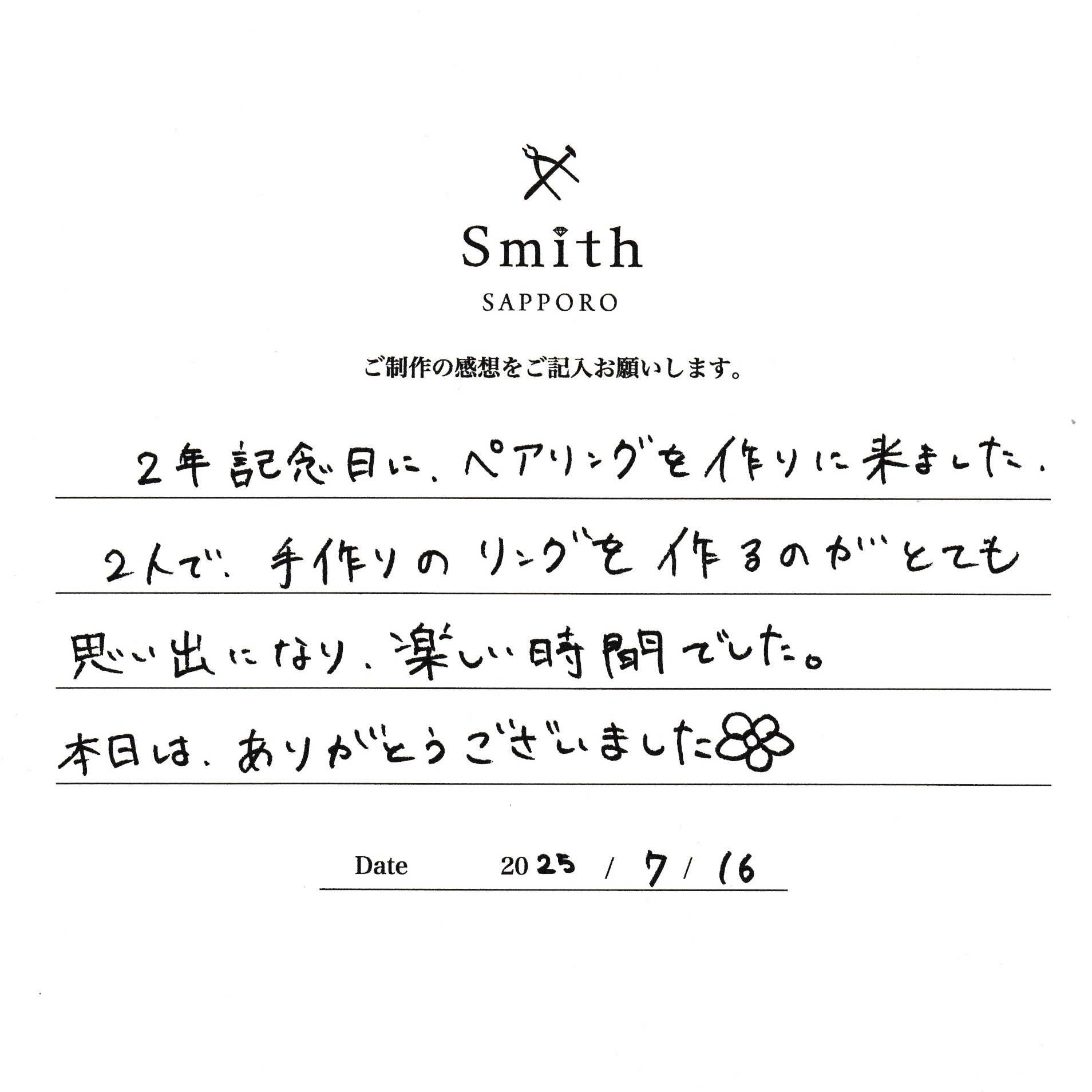 2年記念日にペアリングを作りに来ました。