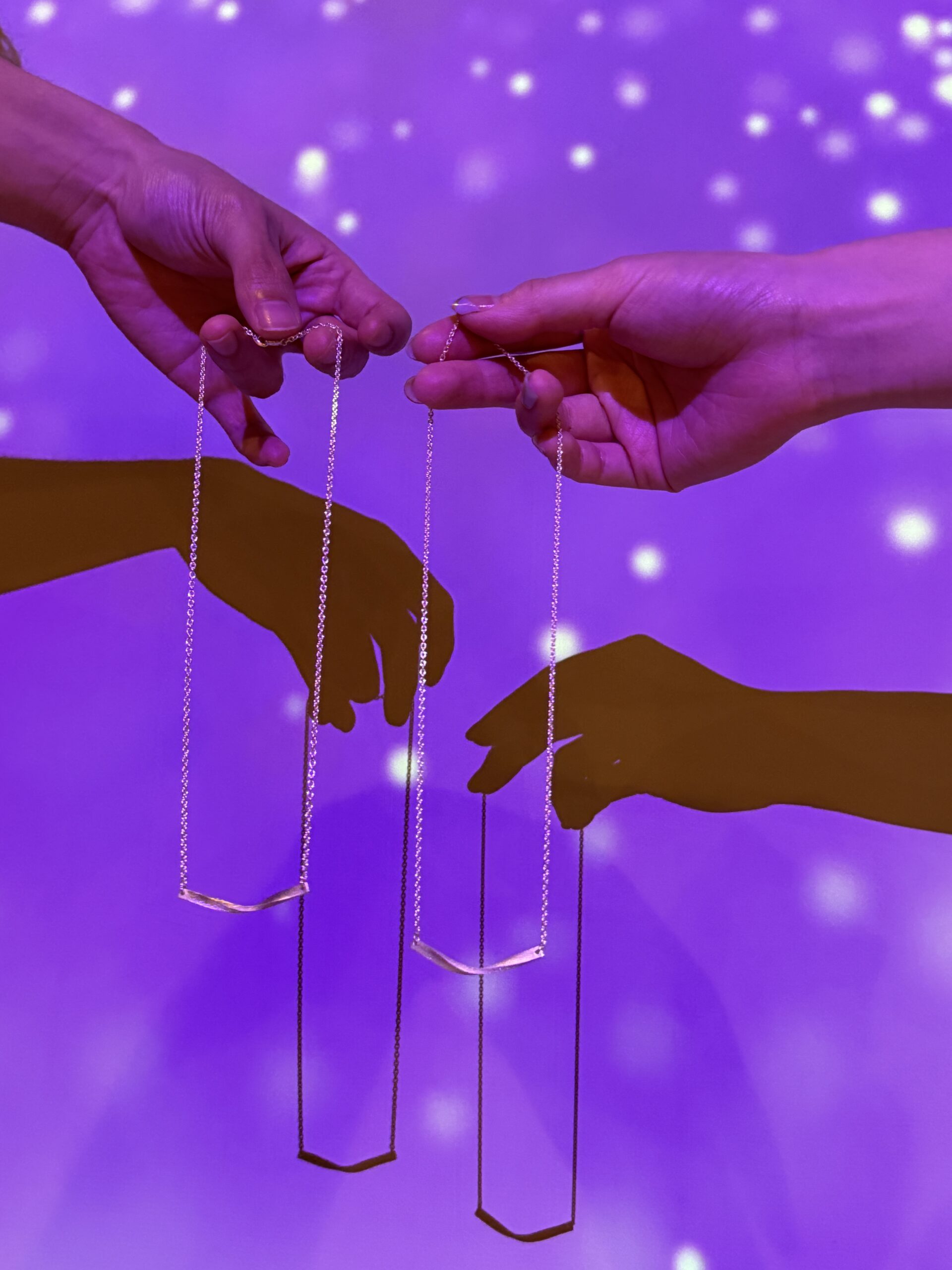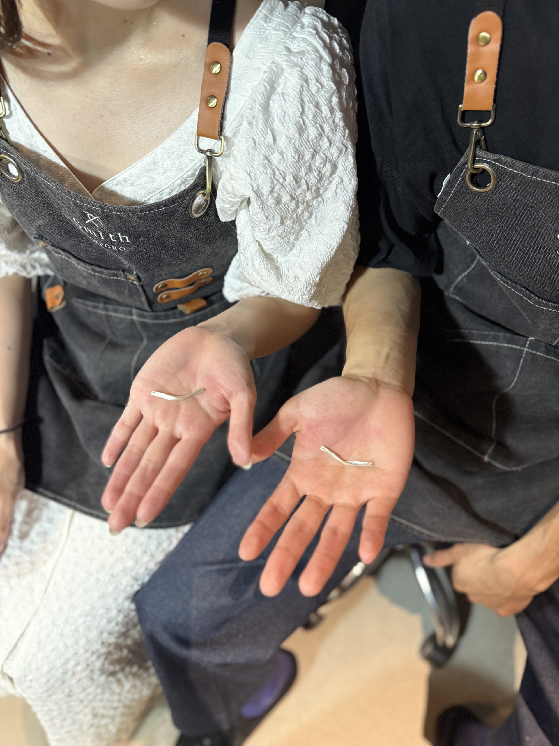 ご制作されたネックレスは、スターダスト加工による上品なきらめきと、ひねりを加えたデザインがとても印象的でした。